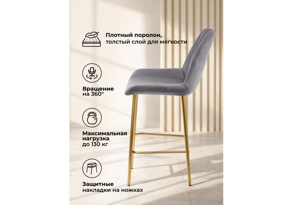 Купить "Барный стул поворотный Woodville Седа 360 темно-серый (zd 995) / золотой np 632595"