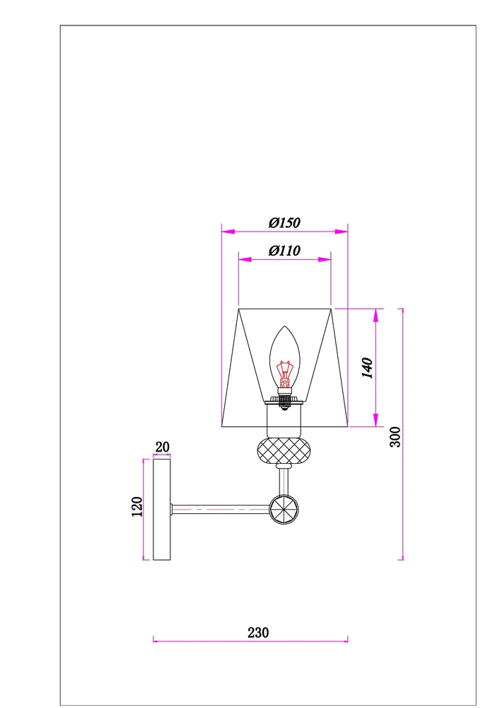- Форма плафона: Абажур, Конусный