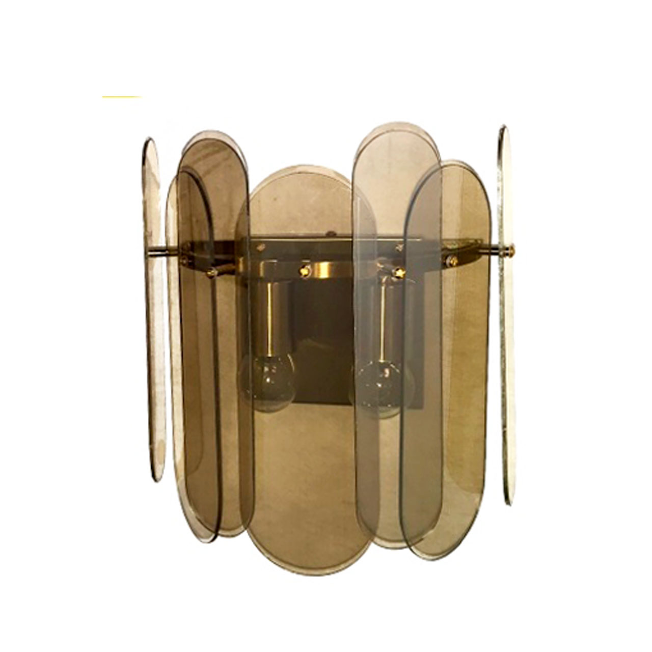 Металлическое основание настенного бра гальванизировано в цвет бронзы. Вертикальное бра декорировано стеклом овальной формы, гальванизированным в цвет топаз.