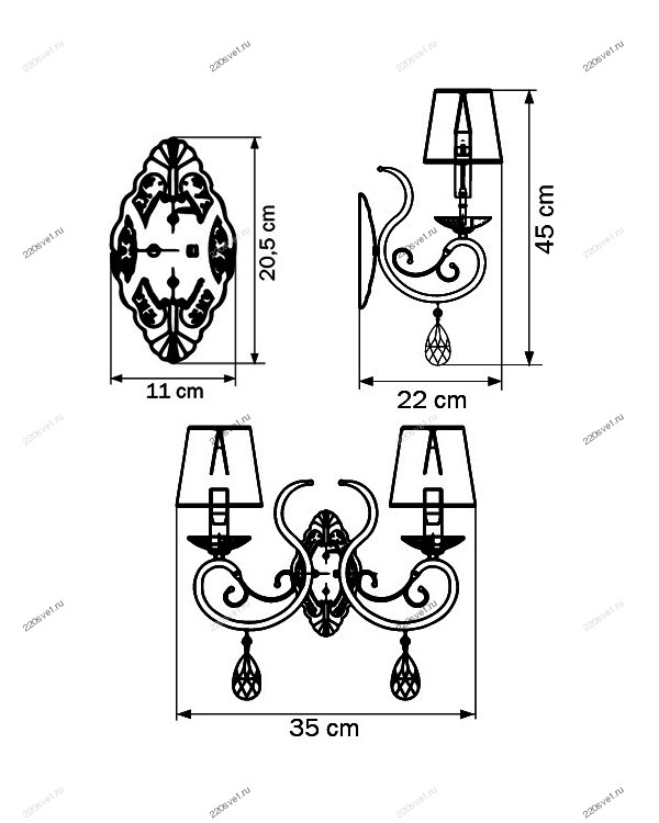 - Количество ламп: 2 шт