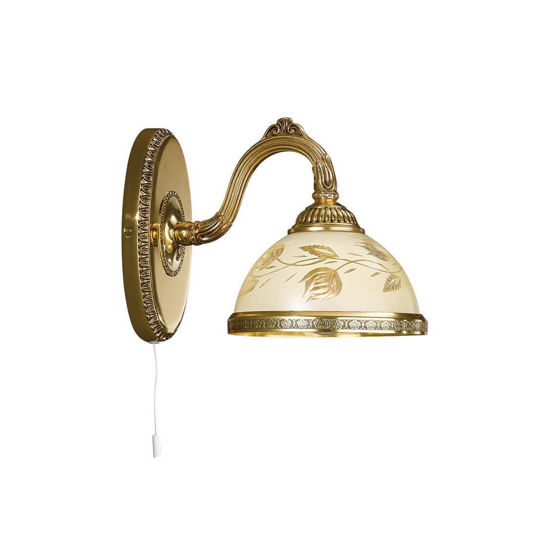 Бра Reccagni Angelo A 6308/1 Итальянского производсва – лучшее соотношение цена-качество. Этот светильник Классического стиля хорошо подойдет Для спальни и придаст помещению мягкий и приятный свет. Плафоны белые из стекла. Арматура золотая из металла. Кол-во ламп - 1шт. Общая мощность 60W
