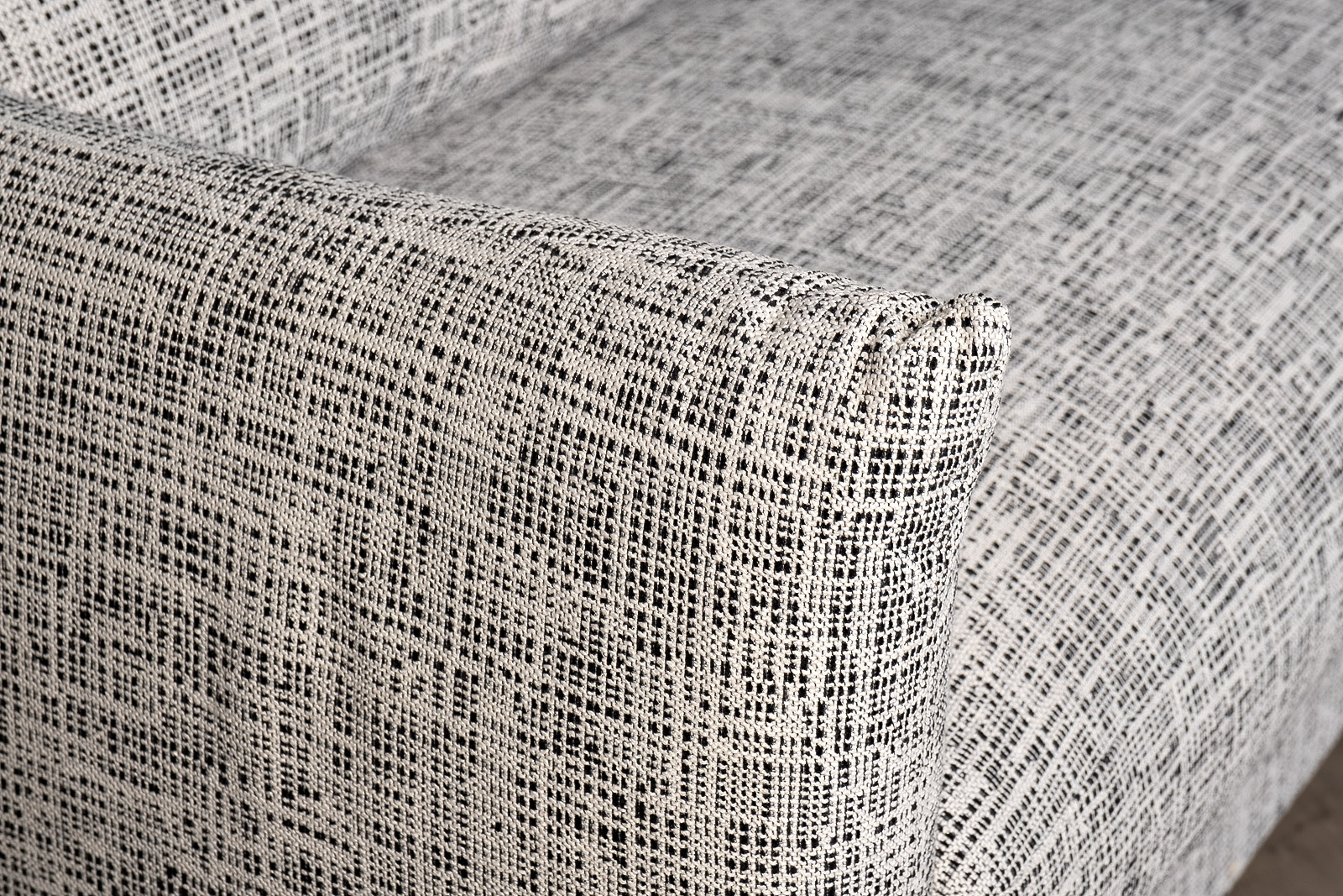 Универсальный и утончённый, этот серый тканевый диван с геометричным узором легко вписывается в современные и нейтральные интерьеры. Благодаря лаконичным формам и глубоким подушкам он становится центром притяжения в гостиной или кабинете. Его текстура доб...