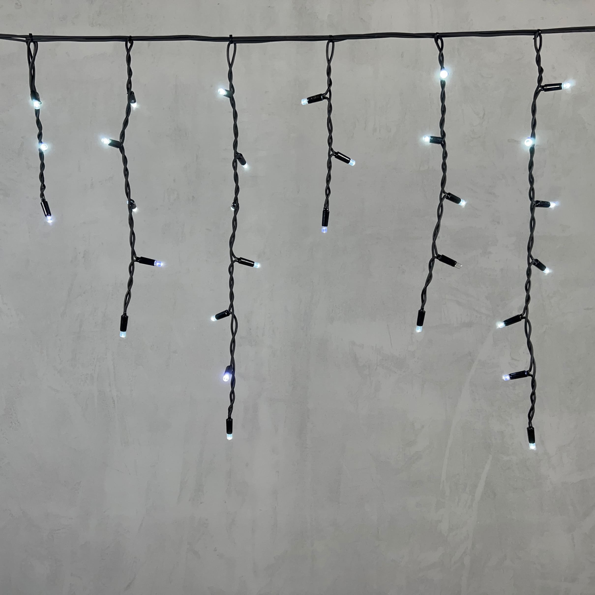 Гирлянда Бахрома 3, 1 x 0, 5 м Белая с Мерцанием Белого Диода 220В, 120 LED, Провод Черный Каучук, IP65 LTC LL120BLW-1-2W в г. Артеме