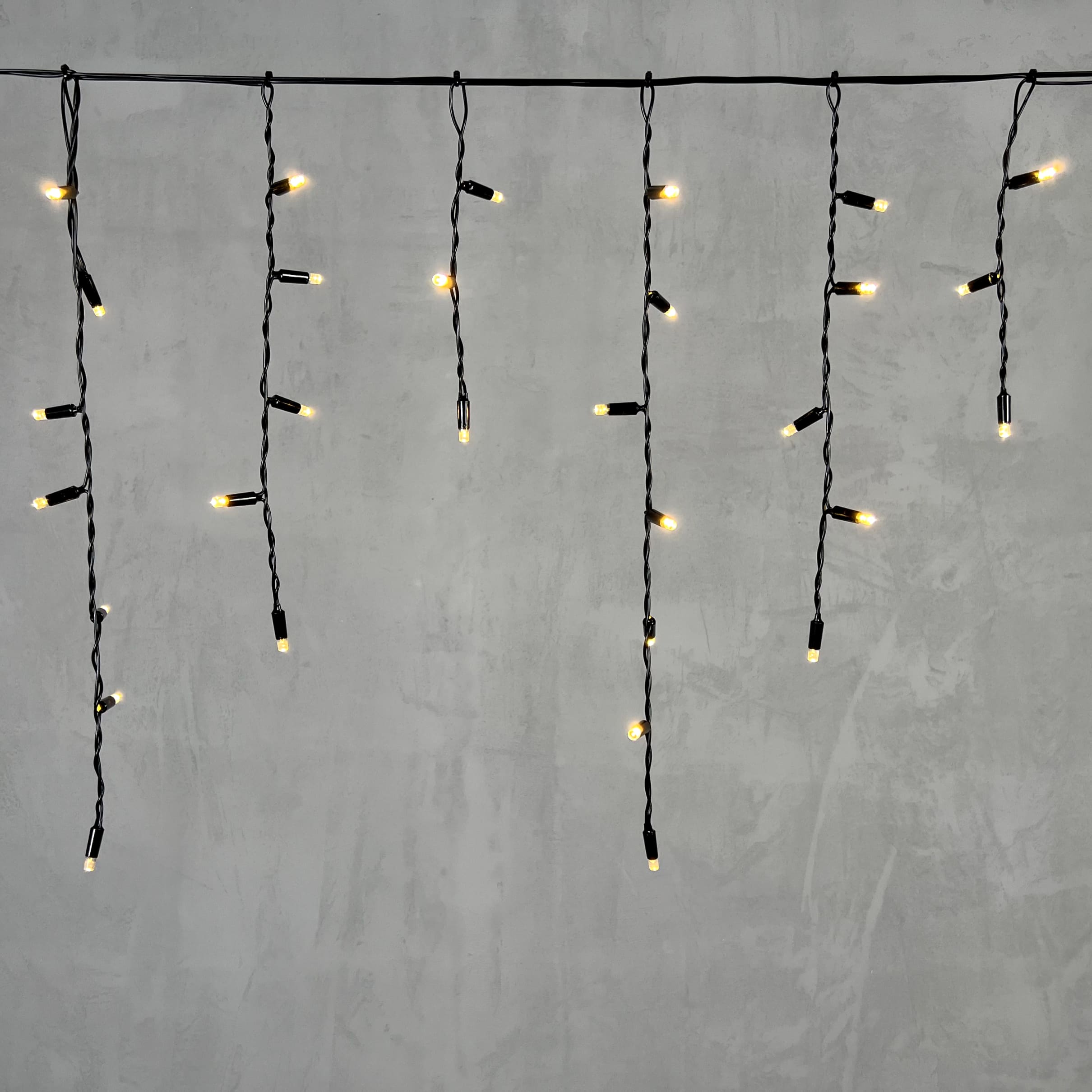 Купить "Гирлянда Бахрома с Колпачком 3,1 x 0,5 м Тепло-Белая 220В, 120 LED, Провод Черный ПВХ, IP65 LTC PIL120CAP-11-2WW"
