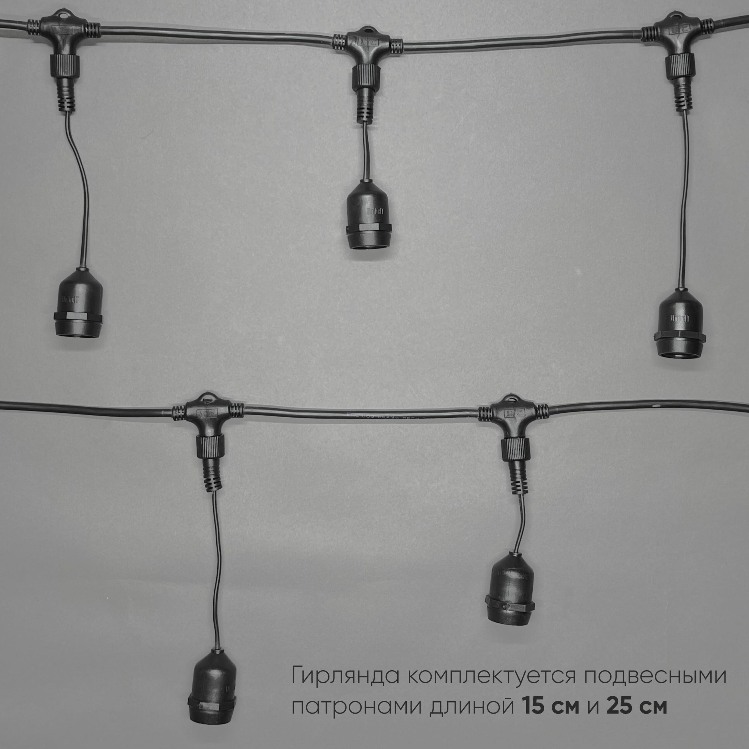 Белт-Лайт UNIBELT 10м, Провод Черный Каучук, Шаг 25 см, 40 Подвесных Патронов, IP65 LTC UBL10m/40L-1 в г. Артеме