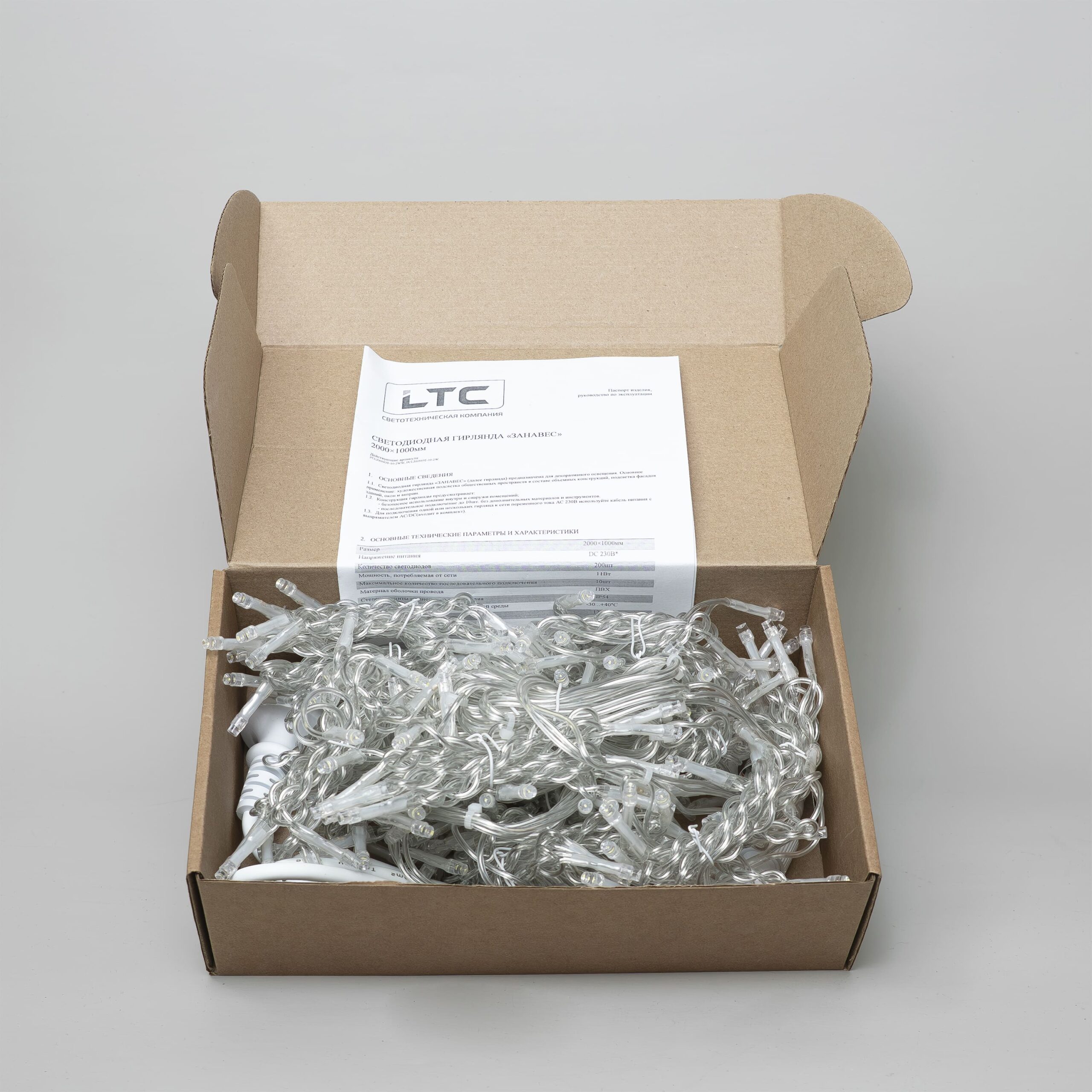 Гирлянда Занавес Облегченный 2 x 1 м Тепло-Белый 220В, 200 LED, Провод Прозрачный ПВХ, IP54 LTC PCL200NOT-10-2WW в г. Артеме
