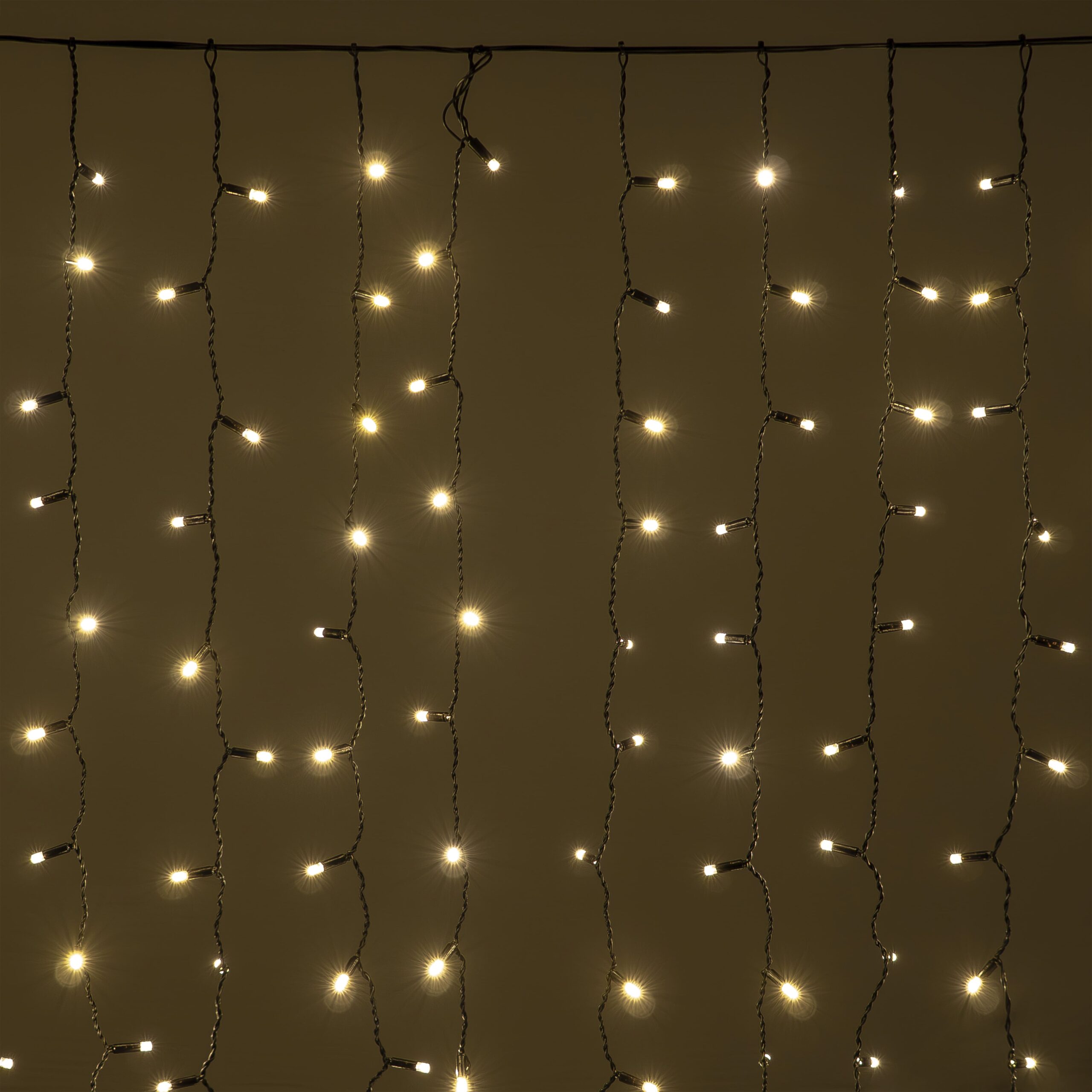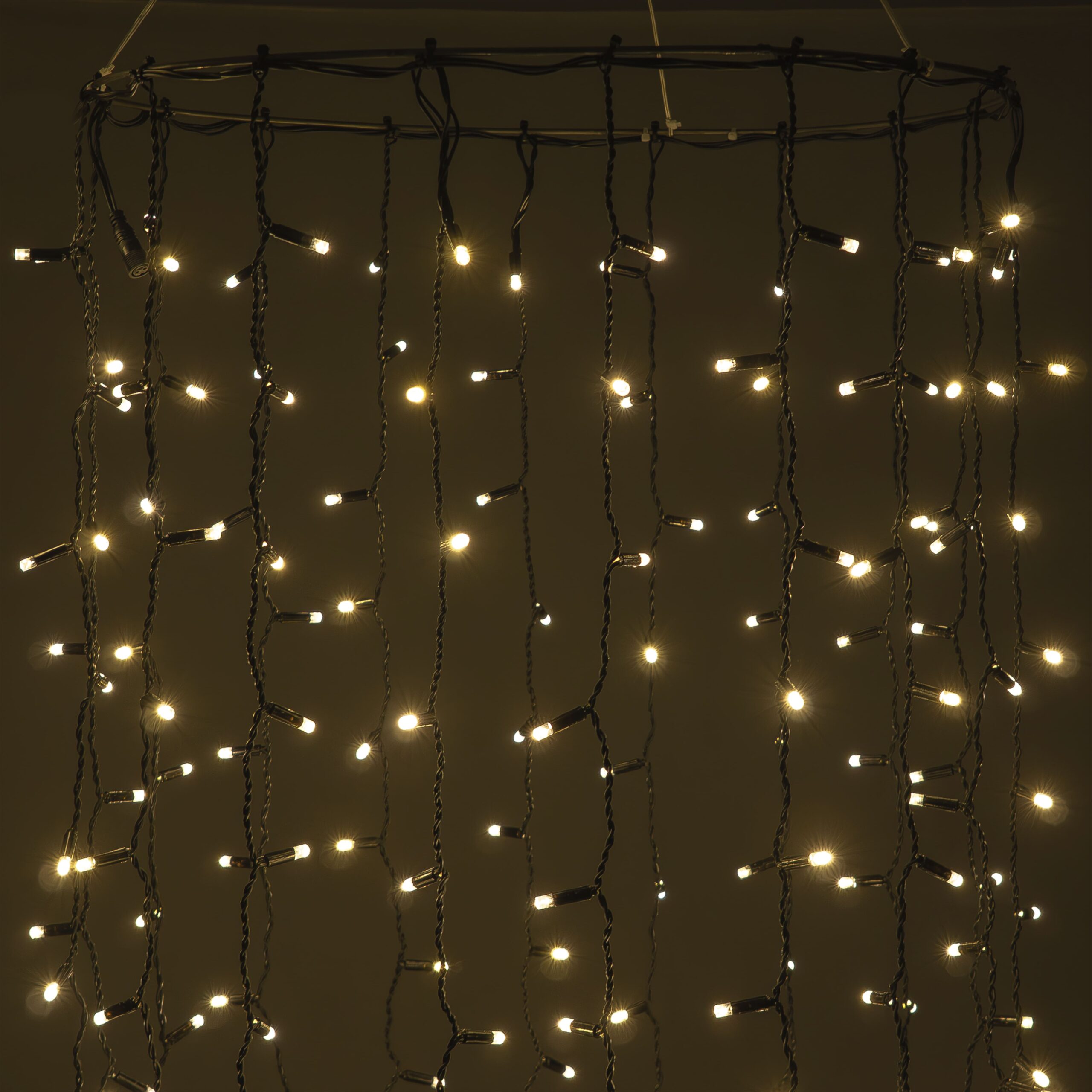 Купить "Гирлянда Занавес Облегченный c Колпачком 2 x 1 м Тепло-Белый 220В, 200 LED, Провод Черный Каучук 2,3мм, IP65 LTC ECO200NOT-1-2WW"