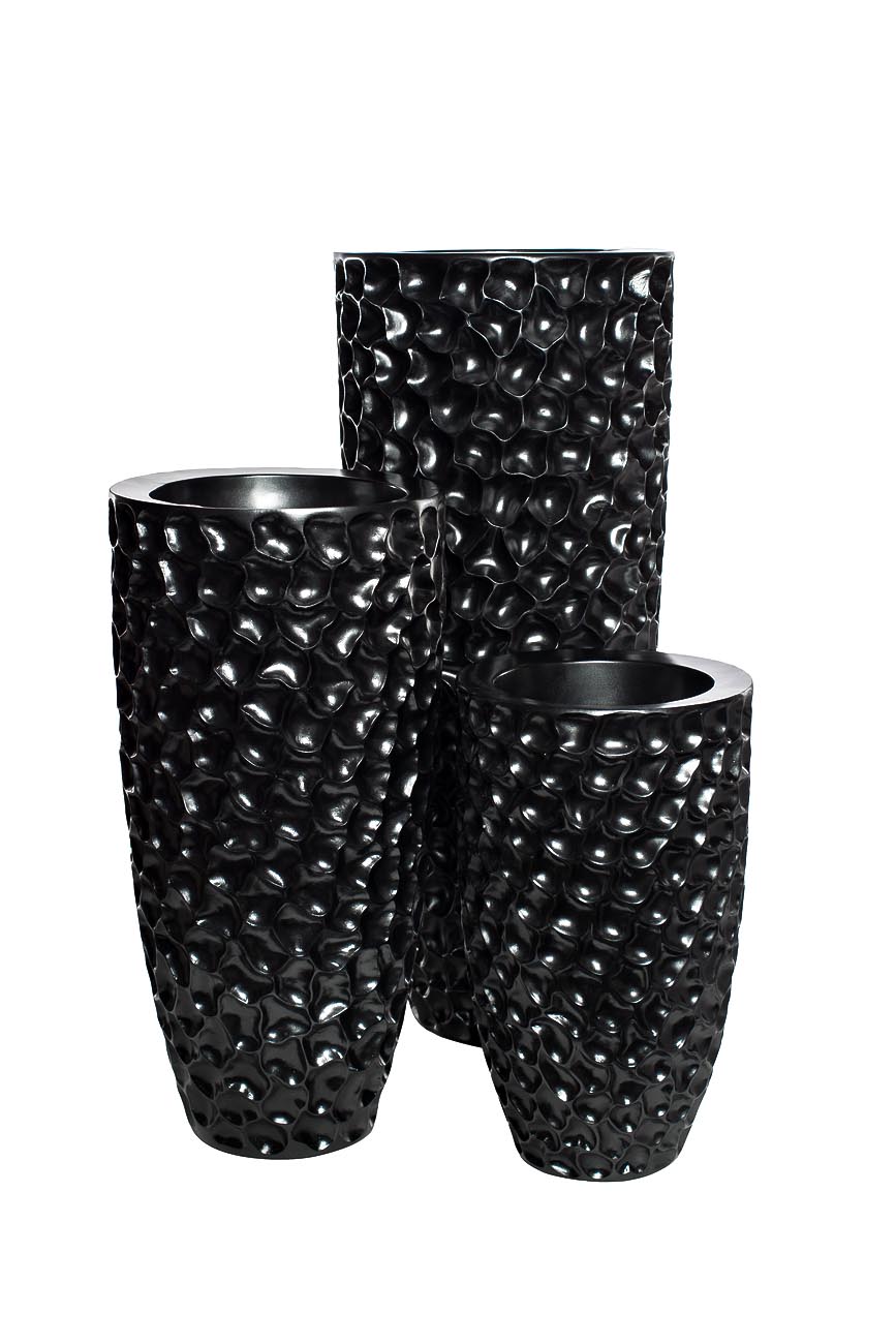 Красивое напольное кашпо жемчужно-черного цвета идеально подходит для стильных современных интерьеров. Высокое напольное кашпо имеет достаточно глубокое дно и предназначено для комнатных растений в горшках или композиций из искусственных растений. Для его...