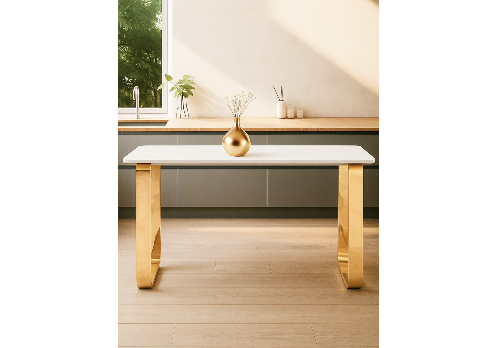 Купить "Керамический стол Woodville Селена 4 140х80х77 белый мрамор / золото 571414"