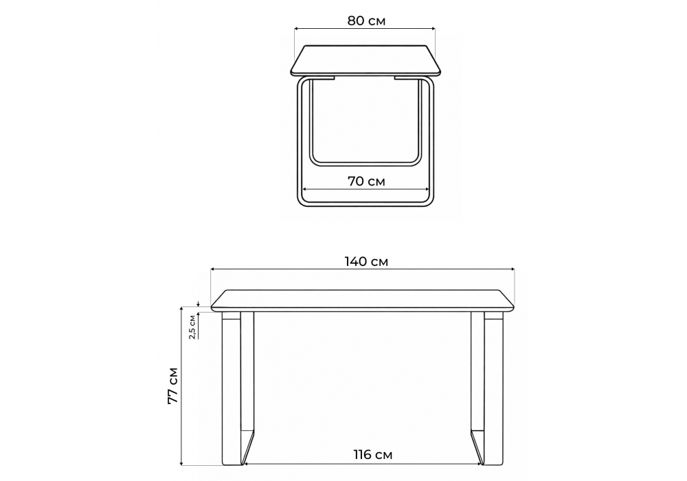 Толщина столешницы: 2,5 см. Материал каркаса - металл; Материал столешницы - Керамика; Ширина - 80; Высота - 77; Длина - 140;