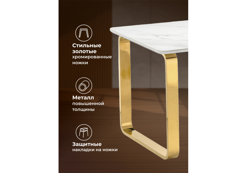 Керамический стол Woodville Селена 4 140х80х77 белый мрамор / золото 571414 в г. Артеме