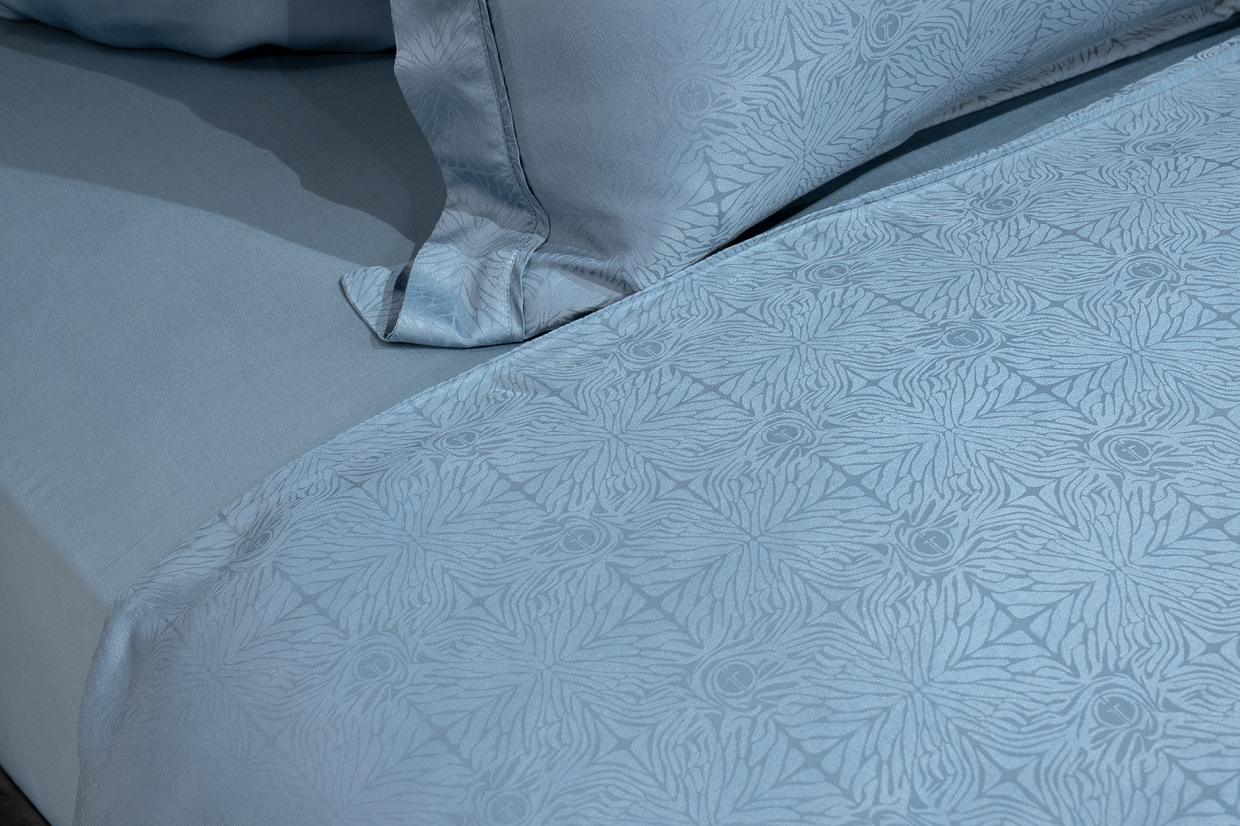 Комплект «Муар» изготовлен из приятного на ощупь 100% бамбукового волокна, которое идеально подходит для людей с чувствительной кожей. Белье из бамбуковых волокон гигроскопично, пропускает воздух, тактильно приятно. Жаккардовое белье пастельных оттенков будет идеально смотреться как в традиционном, так и в современном интерьере. Пошив в коллекции Муар, цвет сине-зеленый, представлен одним из самых распространенных способов украсить постельное белье: С 4х сторон, по периметру пододеяльника и оксфордских наволочек делается отстрочка с плоским кантом в цвет основы, формирующая бордюр шириной 4см. В данный комплект входят: Пододеяльник 145*210, наволочка 50*70-2шт и простыня 240*250. Уход: Машинная стирка при максимальной температуре 40С, мягкий режим. Стирать моющими средствами для цветных тканей. Не отбеливать. Барабанная сушка возможна, обычная температура. Гладить с изнаночной стороны при максимальной температуре утюга. Сухая химчистка запрещена.
