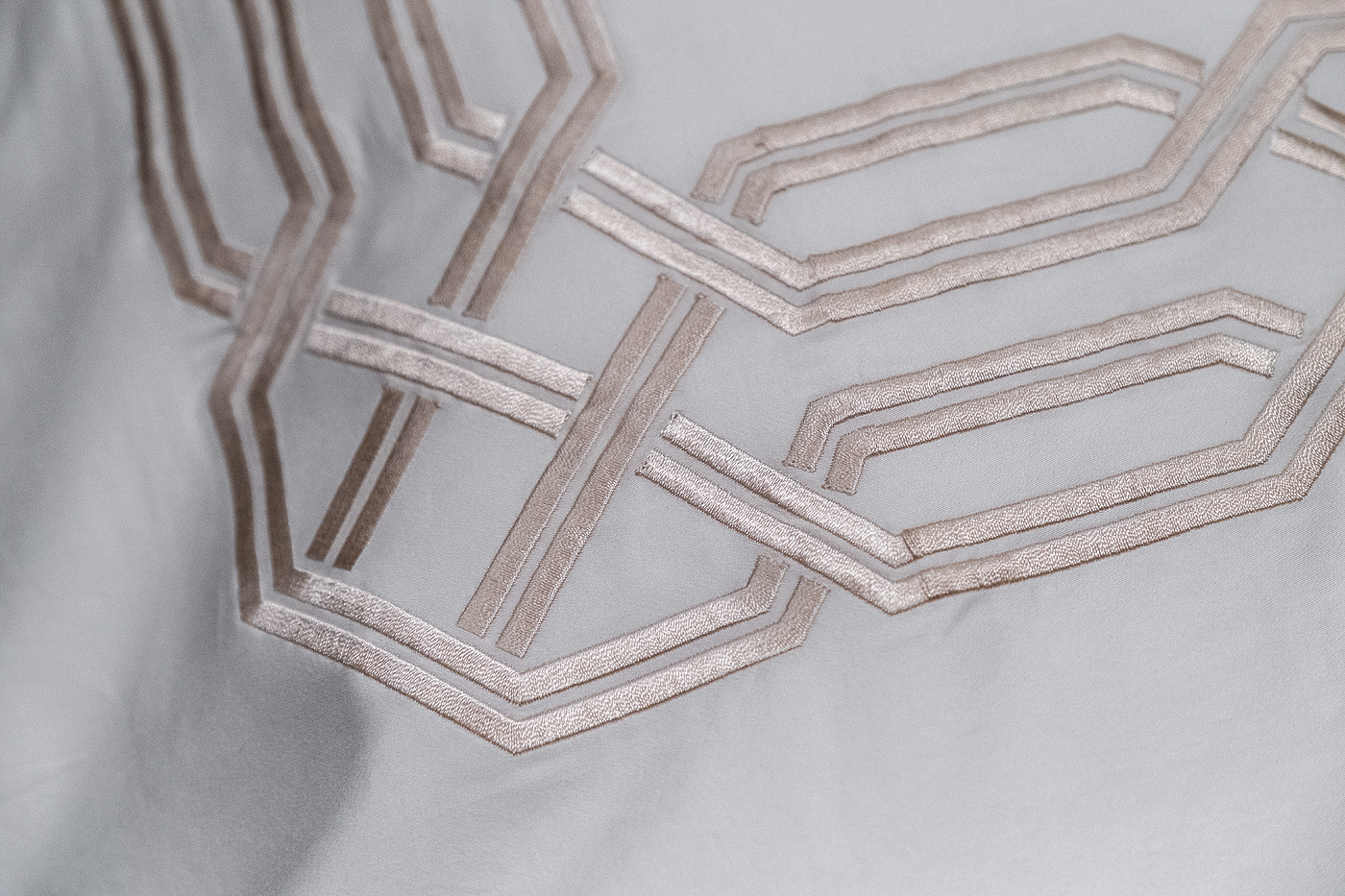 Классический комплект «Паллада» изготовлен из 100% хлопка-сатина высокой плотности 400ТС. Белое белье украшает изящная золотистая вышивка, которая обрамляет пододеяльник по периметру, а на наволочках представлен только с одной стороны. Модель привлекает внимание красивым контрастом между белой тканью и орнаментом оттенка античного золота. Вышивка на постельном белье - дорогой элемент, который придает белью более выраженный вид, создавая объем и, подчеркивая, ценность постельного белья. Оригинальная геометрия орнамента подойдет и для современного интерьера, и для эффектного стиля ар-деко, и для классического дизайна.В данный комплект входят: Пододеяльник 145*210-2шт, наволочка 50*70-2шт и простыня 270*280. Уход: Машинная стирка при максимальной температуре 40С, мягкий режим. Стирать моющими средствами для цветных тканей. Не отбеливать. Барабанная сушка возможна, обычная температура. Гладить с изнаночной стороны при максимальной температуре утюга. Сухая химчистка запрещена.