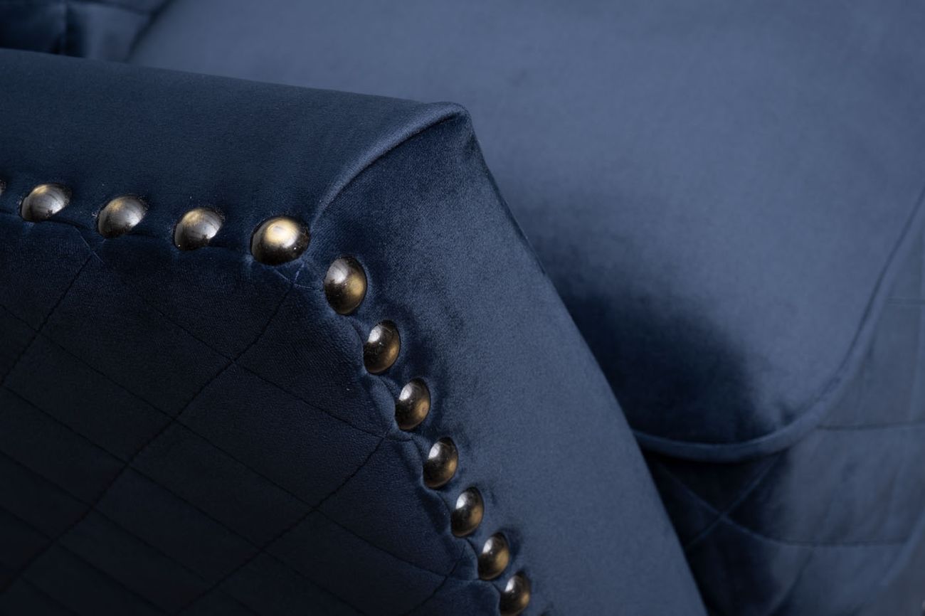 Шикарное темно-синее кресло SORRENTO способно повысить статус своих владельцев и придать помещению аристократичности. В эту модель дизайнеры вложили максимум роскошества и шика: велюровая обивка, бронзовые колесики оригинальной формы, каркас из дерева и декор из гвоздей из состаренной бронзы. Используйте велюровое кресло для дополнения гостиной, рабочего кабинета или спальни. Для повышения комфорта во время отдыха, изделие дополнено мягкими подушками с эффектной прострочкой. Компания Garda Decor предлагает кресло на заказ в Москве с доставкой. Высота спинки (габаритная с подушками) - 88см.