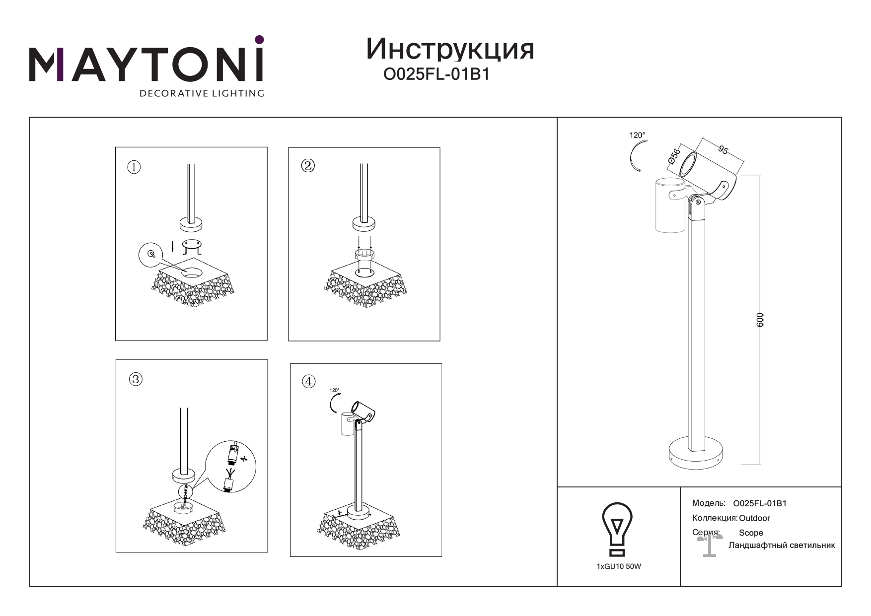Ландшафтный светильник Scope O025FL-01B1 - это стильное и функциональное решение для наружного освещения. Он идеально впишется в любой экстерьер, добавив изысканности и шарма вашему пространству.