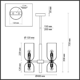 Потолочная люстра Vitaluce V5153-1/4PL