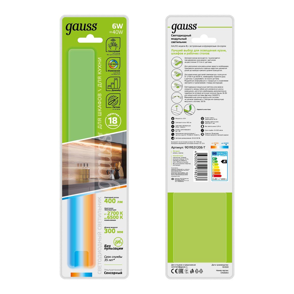 Купить "Модульный светодиодный светильник Gauss B 9019531206-T"