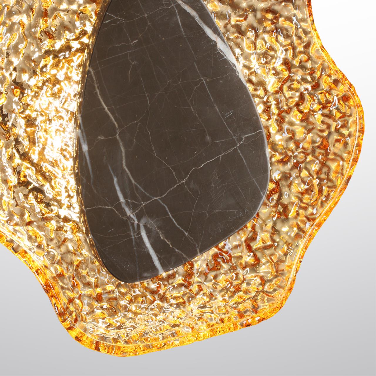 Воздушная коллекция настенных светильников Coralla вдохновлена красотой морских обитателей. В ней читаются образы коралловых рифов и узоров на морском дне. Стеклянный рассеиватель создает на поверхности стены завораживающие отсветы, похожие на блики на волнах. Декоративный элемент природной формы выполнен из натурального мрамора или металла.