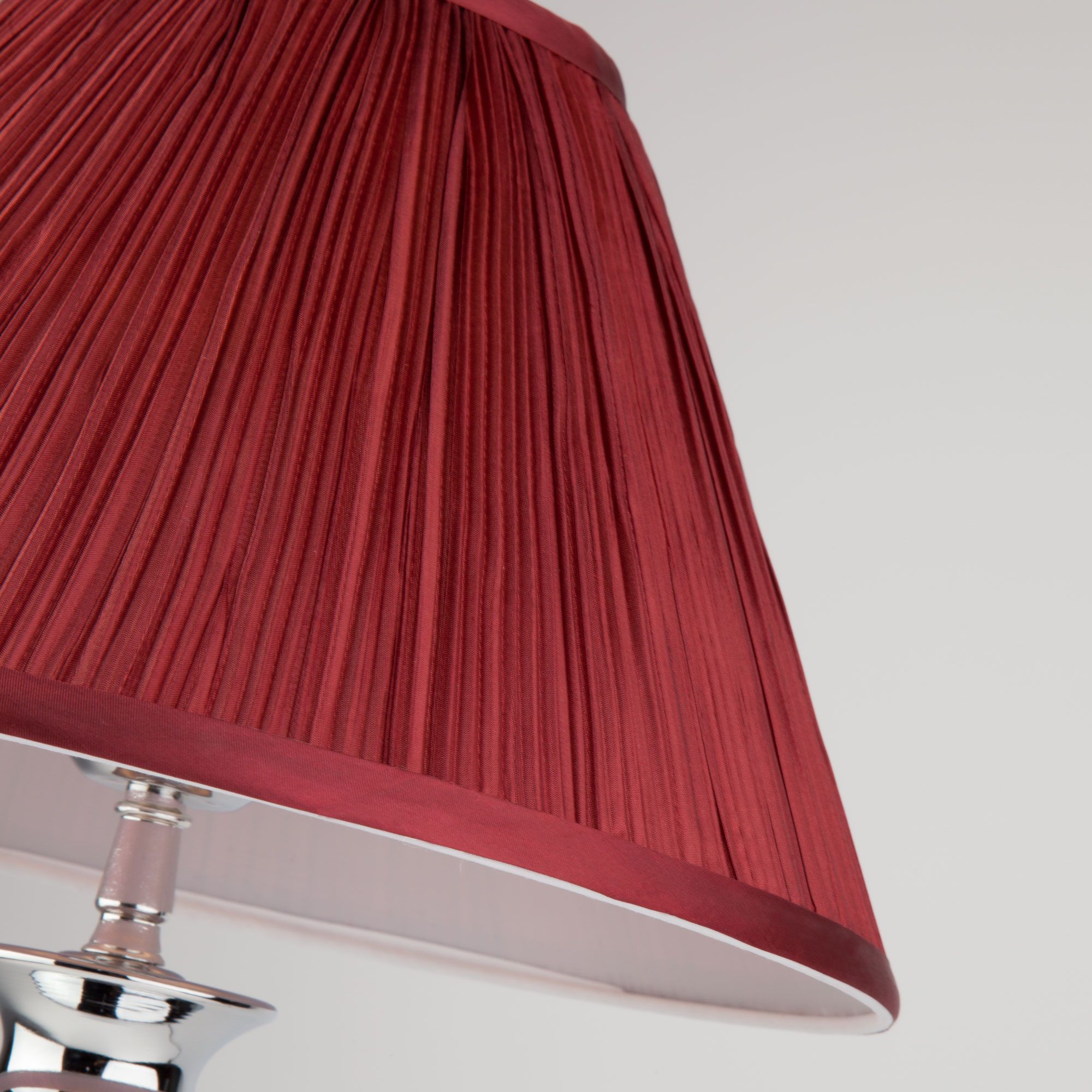 Благодаря бордовому тканевому абажуру настольная лампа создает мягкое рассеянное свечение, подходящее для комфортного чтения книг в вечернее время. Прочный металлический корпус светильника устойчив к механическим воздействиям, а защитное покрытие обеспечивает надежную электроизоляцию.