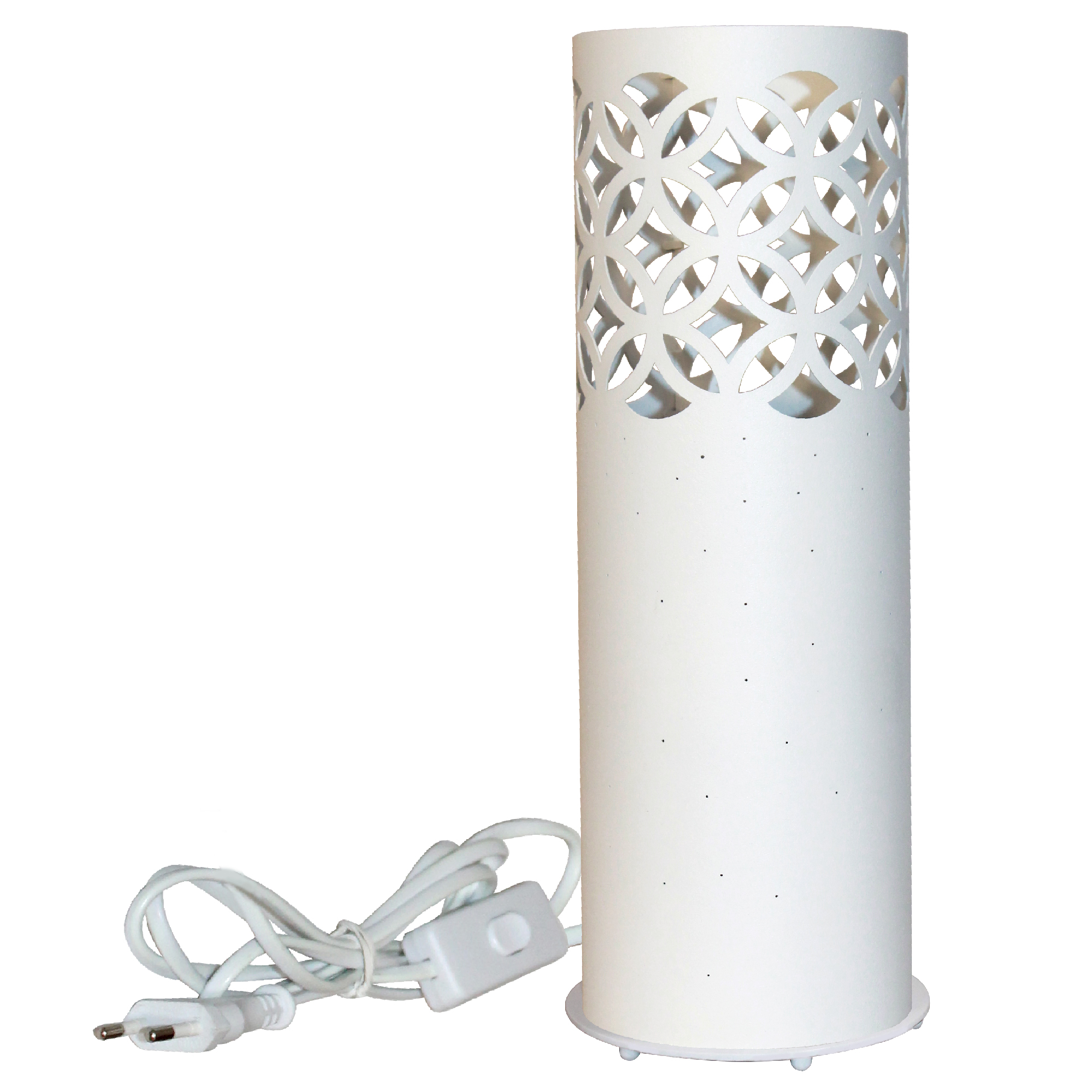 Настольный светильник из серии "Касабланка" отлично подойдет для комнаты, оформленной в современном стиле, предназначен для декоративного освещения помещения до 3 м2. Производитель рекомендует использовать в светильнике лампы накаливания с цоколем E27 и мощностью не более 60W, а также светодиодные или энергосберегающие лампы. Стильный современный дизайн светильника придаст вашей комнате неповторимый и изысканный вид. Стальной корпус представлен в бархатном белом цвете. Неповторимый рисунок, который нанесен на рассеиватель создает игру света и тени в комнате (при использовании лампы накаливания). Сделать данный светильник уникальным и неповторимым позволит применение светодиодной RGB лампы. Лампы в комплект не входят. Габаритный размер изделия - 107*286 мм ,длина провода 1500мм. Данную модель 1005404752 можете купить в интернет-магазине 220svet.