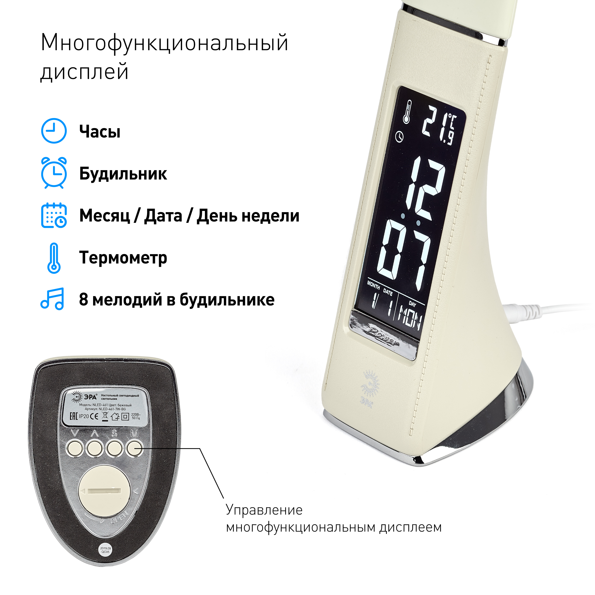 Настольная лампа ЭРА NLED-461-7W-BG бежевая в г. Артеме