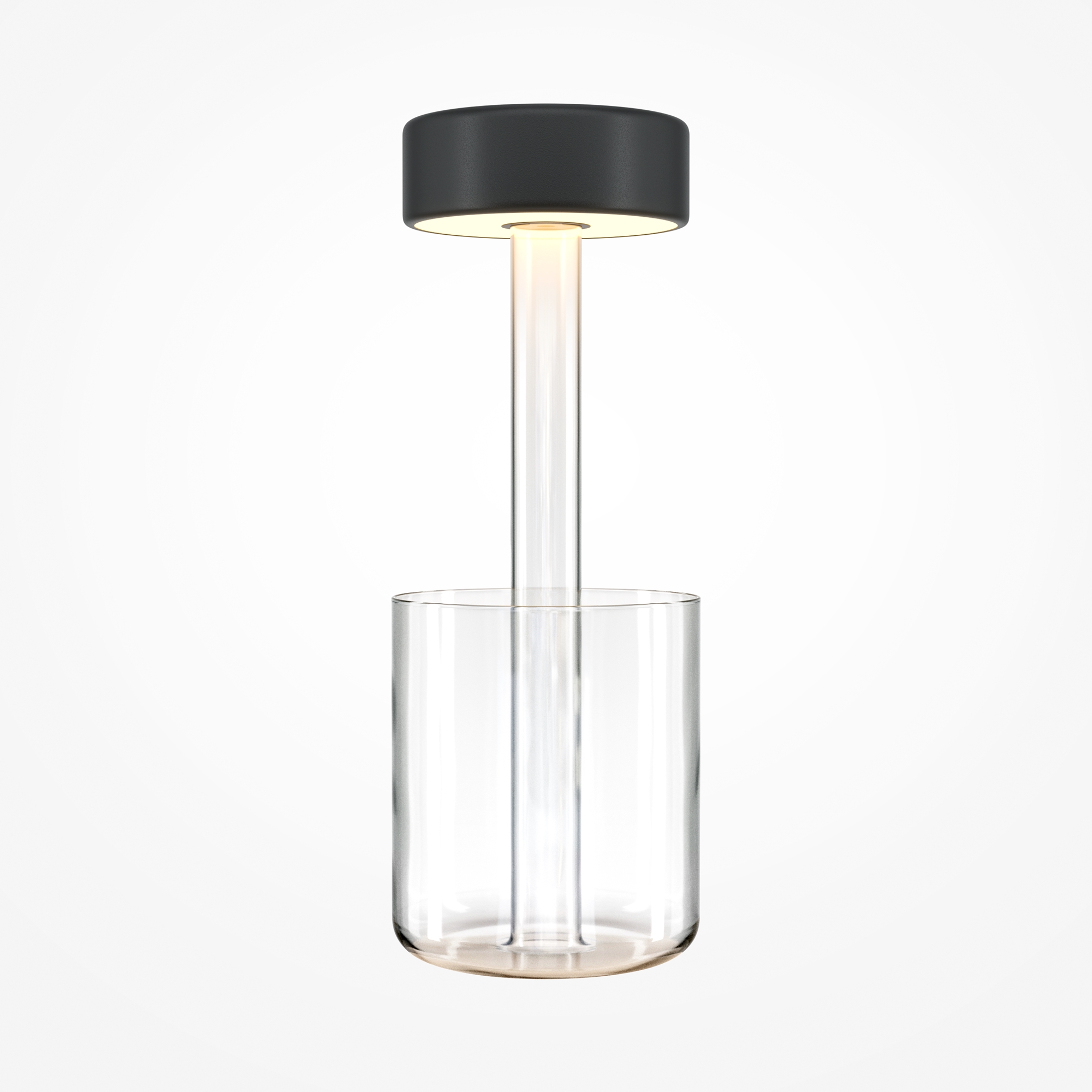 Портативный настольный светильник. Результат творческой коллаборации искусственного интелекта и предметного дизайнера. Два варанта корпуса светильника: с металлической тонкой ножкой на плоском круглом основании; со стеклянным основанием с интегрированным в него вазой. Плафон снимается с основания для удобного ухода за стеклянными элементами и подзарядки аккумулятора, расположенного в плафоне. Два варианта цвета стеклянных моделей - прозрачный и серый. Плафоны с рассеивателем из акрила в 3х цветах: черный, золотой, белый. Удобный сенсорный выключатель вверху плафона. Micro USB разъем для подзарядки скрыт в нижней части плафона. LED-источник света. Регулируемая цветовая температура от 2200К до 4000К.