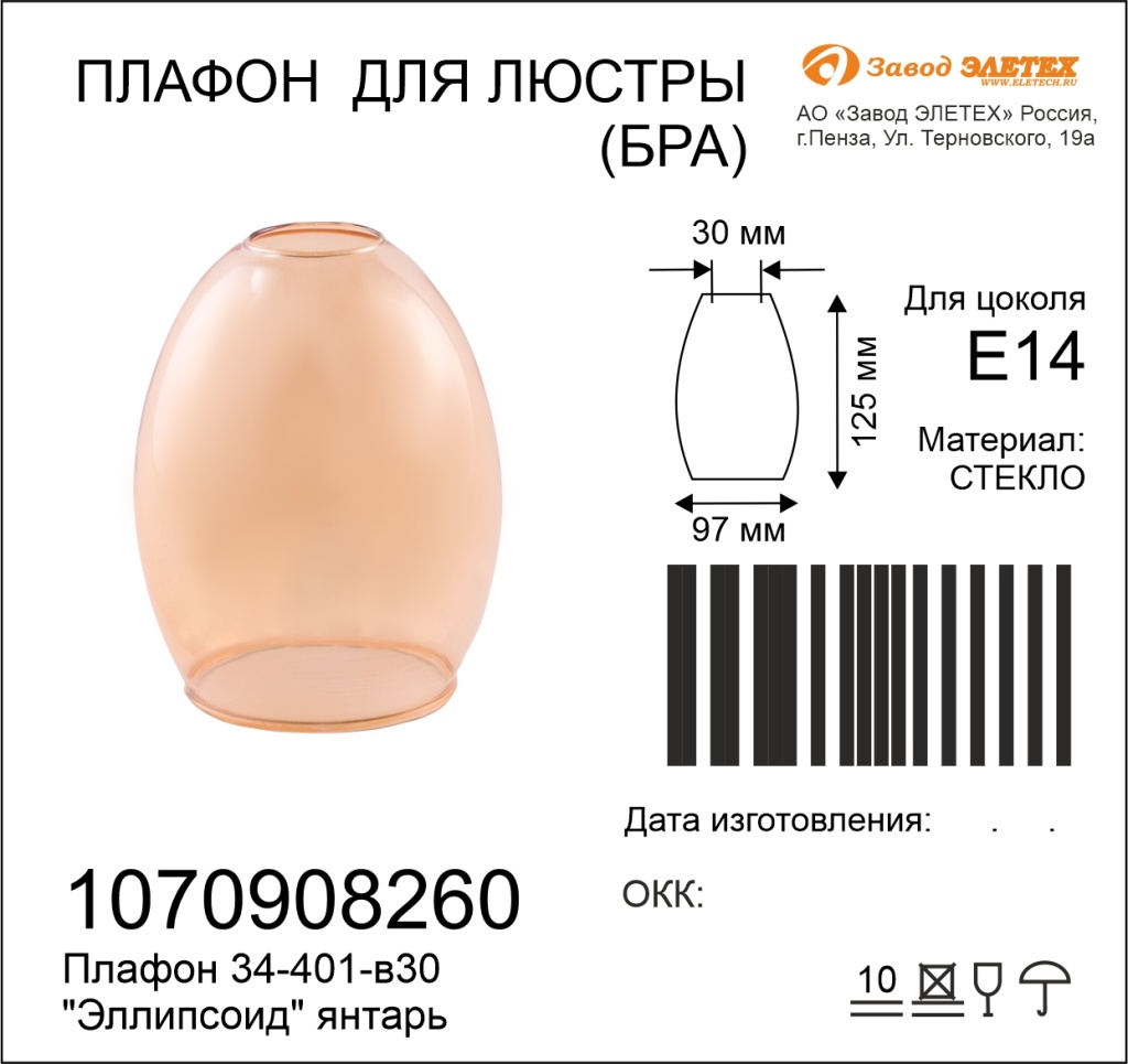 Купить "Плафон Элетех эллипсоид 1070908260"