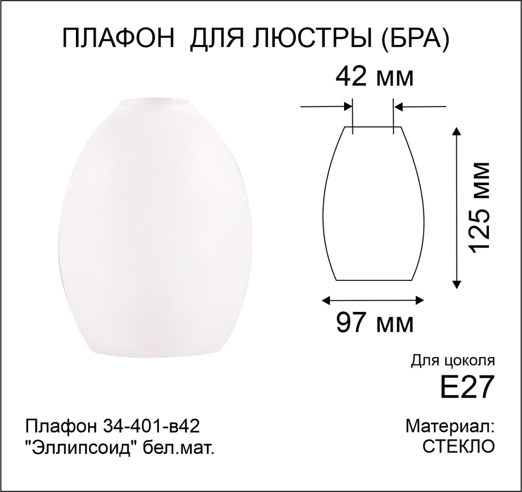 - Форма плафона: Овал