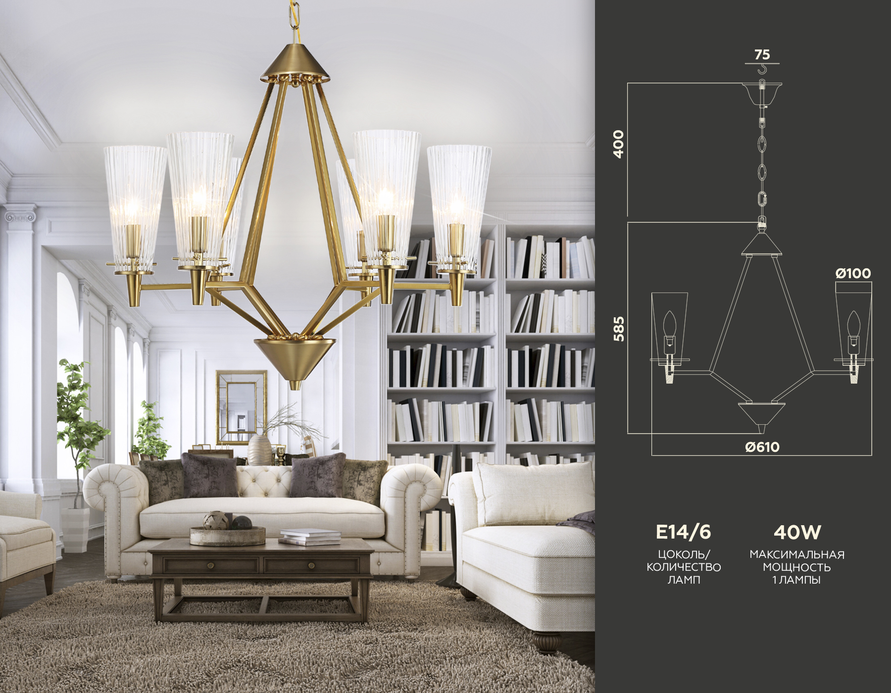 - Количество плафонов: 6