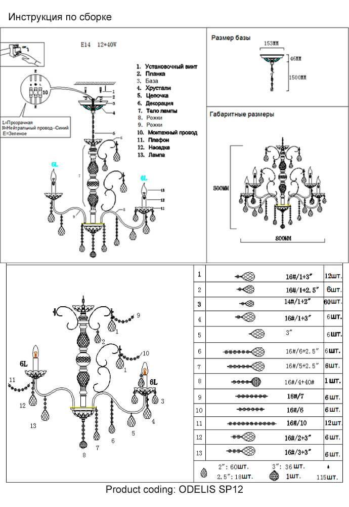 - Количество ламп: 12 шт