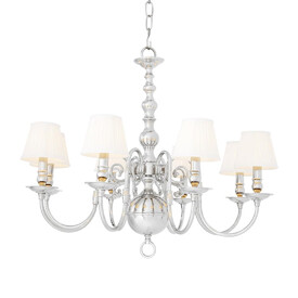 Люстра Bourbon из никелированного металла. Текстильные абажуры белого цвета.