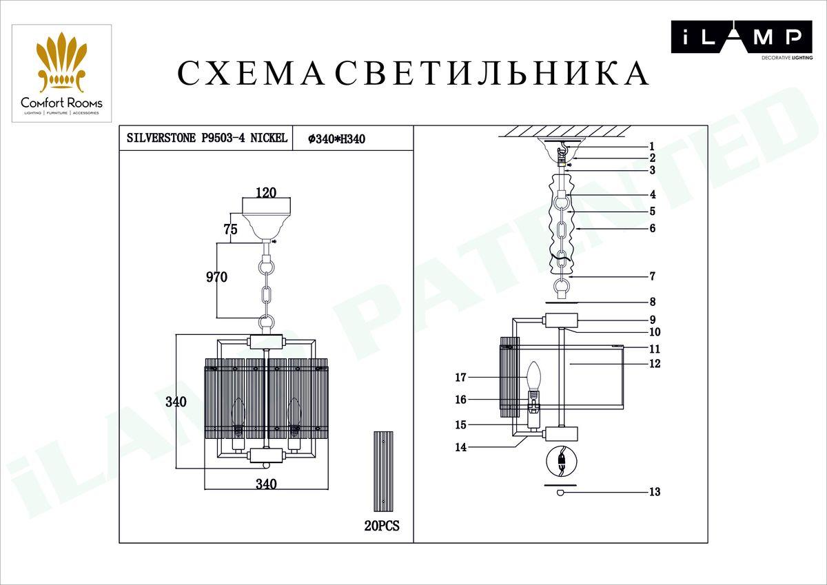 Купить "Подвесная люстра iLamp Silverstone P9503-4 NIC"