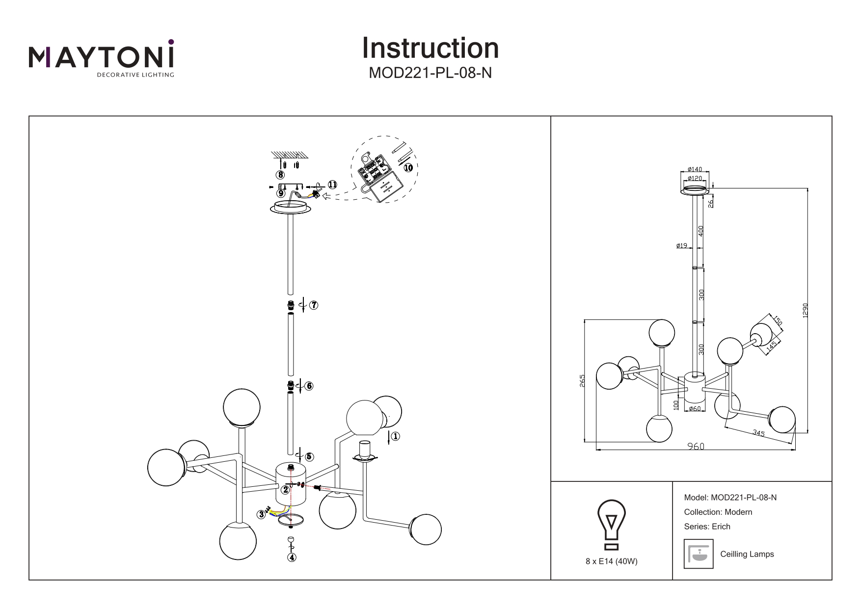Купить "Подвесная люстра Maytoni Erich MOD221-PL-08-N"