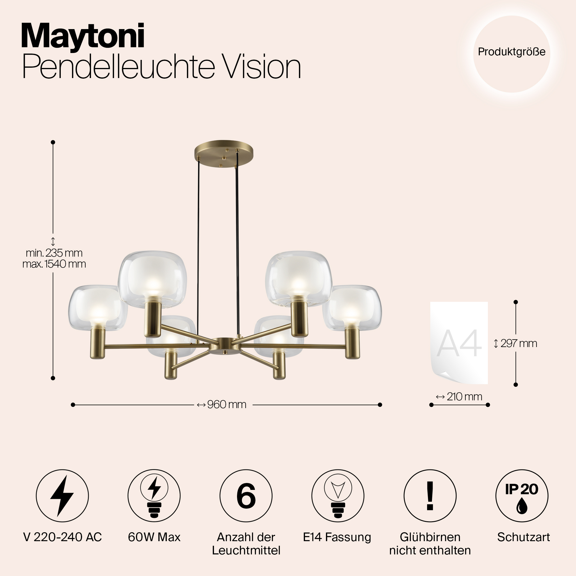 Купить "Подвесная люстра Maytoni Vision MOD411PL-06G"