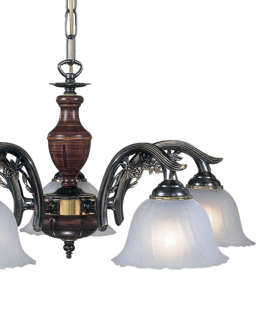 Подвесная люстра Reccagni Angelo L 2700/5 Итальянского производсва – отличный выбор для Вас. Этот светильник Классического стиля хорошо подойдет Для гостиной и придаст помещению мягкий и приятный свет. Плафоны белые из стекла. Арматура бронза из металла. Кол-во ламп - 5шт. Общая мощность 300W