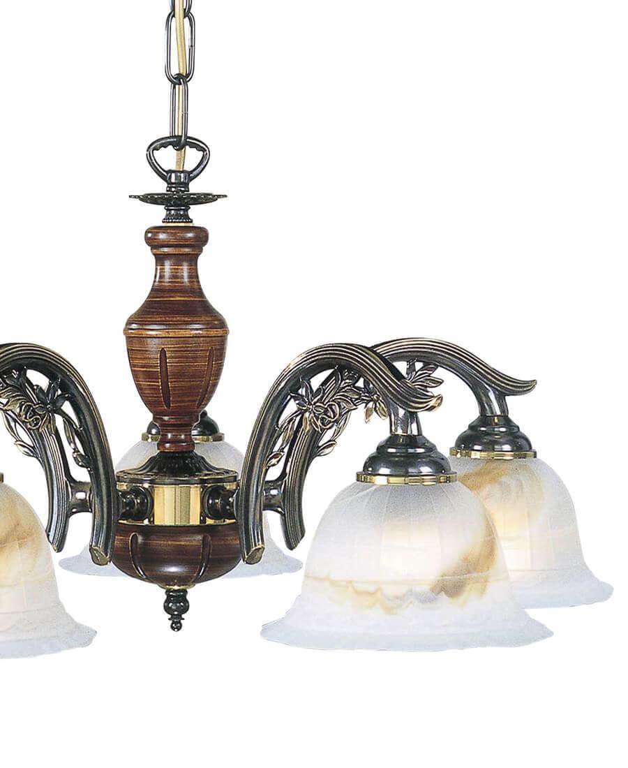 Подвесная люстра Reccagni Angelo L 2701/5 Итальянского производсва – отличный выбор для Вас. Этот светильник Классического стиля хорошо подойдет Для гостиной и придаст помещению мягкий и приятный свет. Плафоны белые из стекла. Арматура бронза из металла. Кол-во ламп - 5шт. Общая мощность 300W