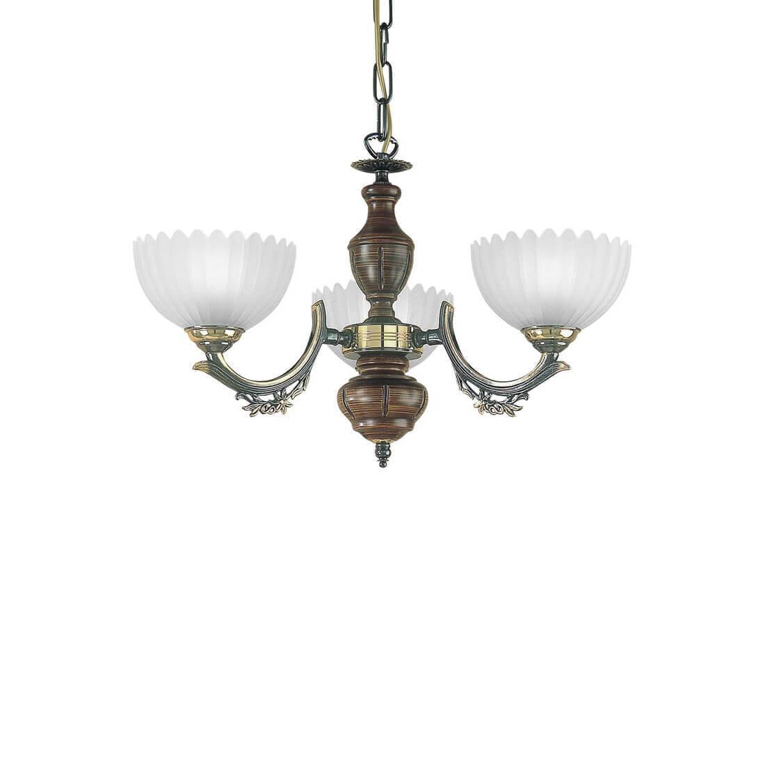 Подвесная люстра Reccagni Angelo L 2805/3 Итальянского производсва – уникальное сочетание высокого качества и удивительных фактур. Этот светильник Классического стиля хорошо подойдет Для спальни и придаст помещению мягкий и приятный свет. Плафоны белые из стекла. Арматура бронза из металла. Кол-во ламп - 3шт. Общая мощность 180W