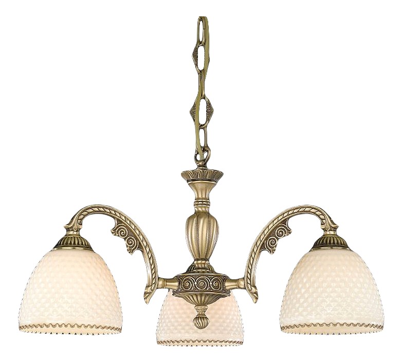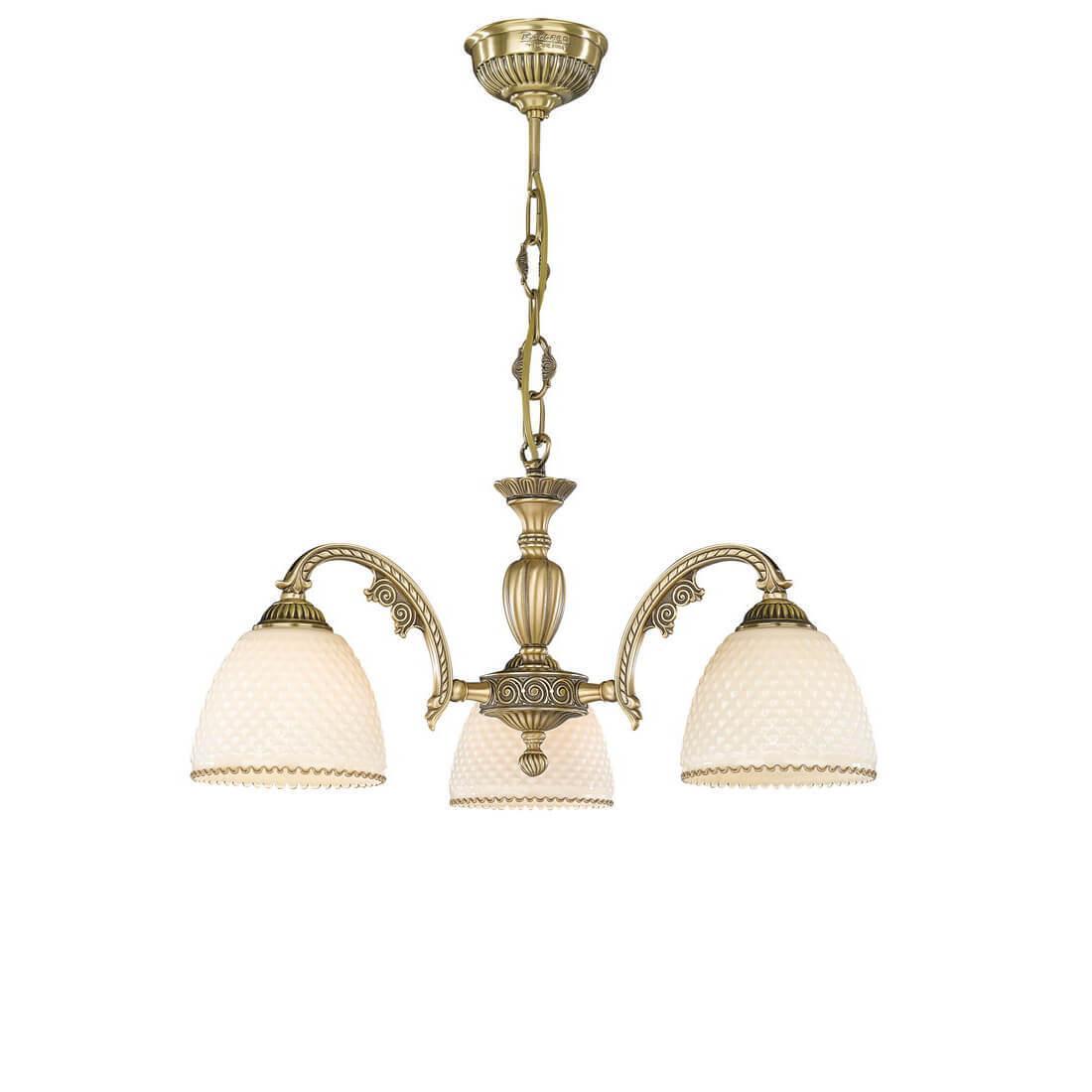 Подвесная люстра Reccagni Angelo L 7005/3 Итальянского производсва – лучшее соотношение цена-качество. Этот светильник Классического стиля хорошо подойдет Для гостиной и придаст помещению мягкий и приятный свет. Плафоны белые из стекла. Арматура бронза из металла. Кол-во ламп - 3шт. Общая мощность 180W
