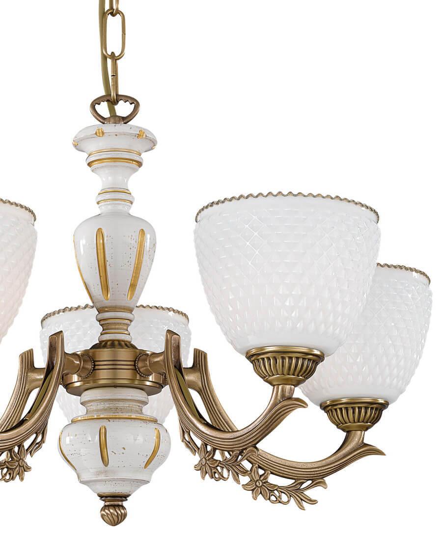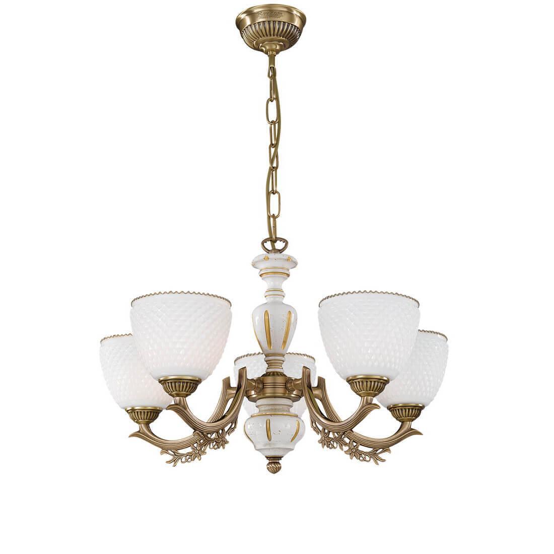 Подвесная люстра Reccagni Angelo L 8656/5 Итальянского производсва – отличный выбор для Вас. Этот светильник Классического стиля хорошо подойдет Для гостиной и придаст помещению мягкий и приятный свет. Плафоны белые из стекла. Арматура бронза из металла. Кол-во ламп - 5шт. Общая мощность 300W