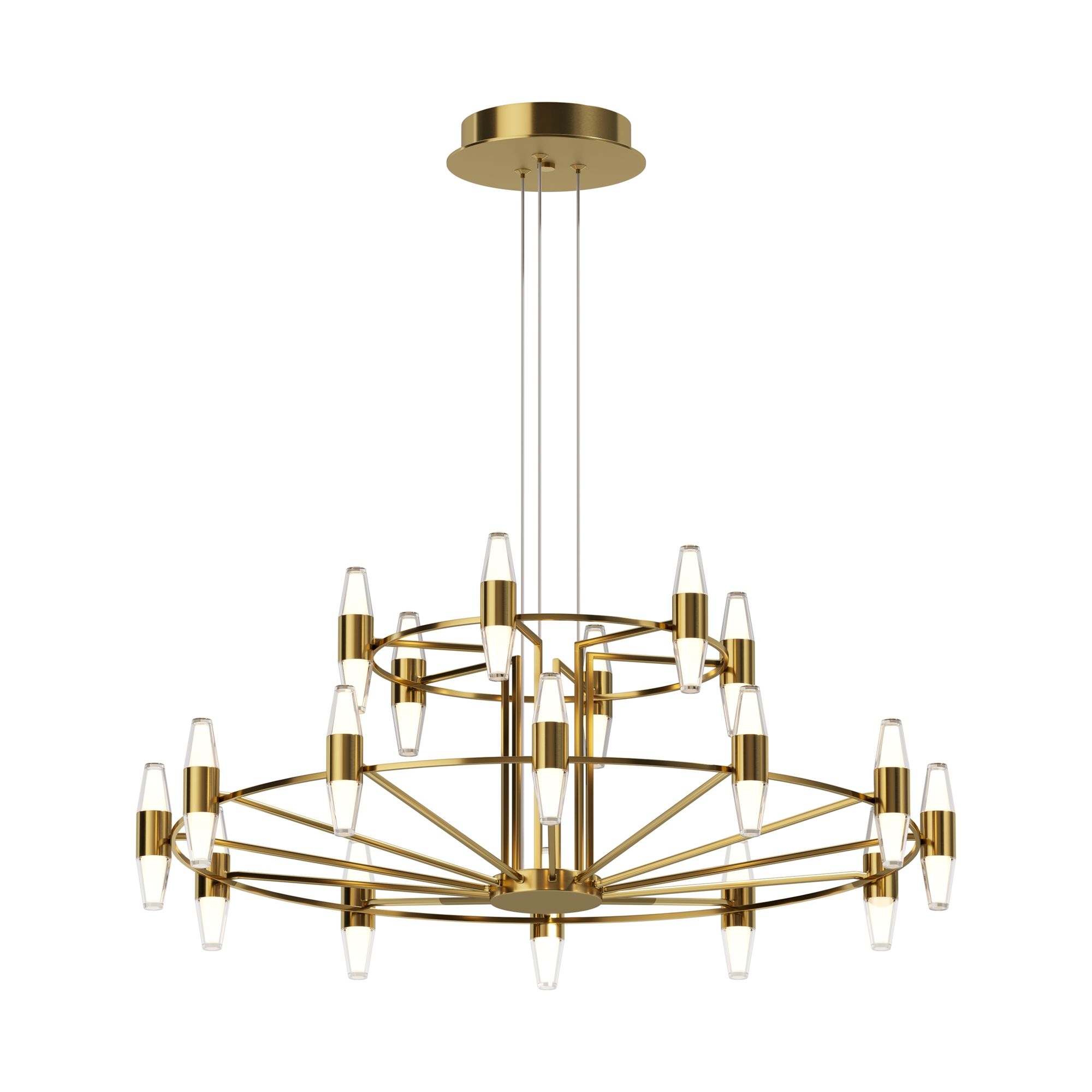 Цвет арматуры — латунь. Двойной плафон, выполненный из двух типов высококачественного акрила - матовый и прозрачный. Объемное освещение с равномерным распределением света во всех направлениях. LED-источник света. Комфортный для глаз свет при значительном световом потоке. Регулируемая высота подвесных моделей.