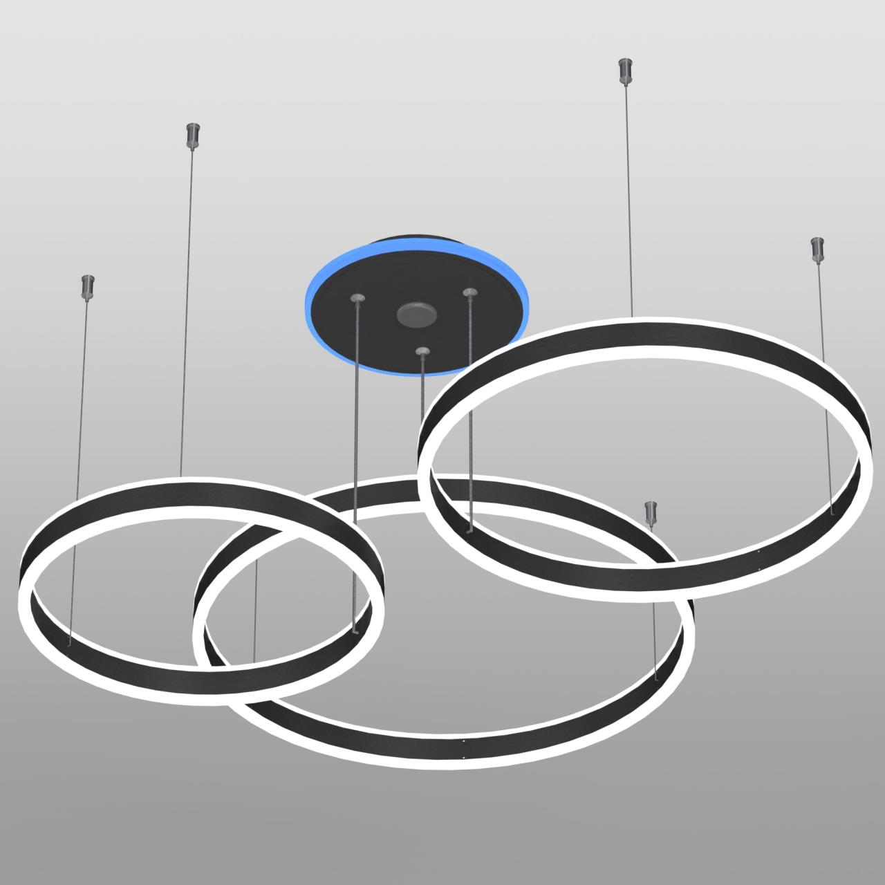 Подвесная светодиодная люстра кольца CL719A701 от производителя Citilux принадлежит серии Дуэт Смарт с голосовым управлением является ярким представителем современных УМНЫХ осветительных устройств экосистемы Citilux SMART. Моделью можно управлять: из приложения на смартфоне по Wi-Fi при наличии интернета, с помощью голосовых помощников Алиса и Маруся, а также пультом дистанционного управления и настенным выключателем. Люстра на тросах, с тремя светодиодными модулями в форме колец. Конструкция изделия позволяет при монтаже установить кольца на разной высоте и на разном удалении от базы, сформировав свой индивидуальный, неповторимый внешний вид светильника. Корпус металлический из алюминиевого сплава цвет чёрный матовый, рассеиватель из оптического полимера. Крепление люстры подходит для всех типов потолков, в том числе натяжных. Мощность светильника Ситилюкс Дуэт Смарт CL719A701 180Вт, световой поток 12000Лм, цветовая температура регулируется 3000К-5500К, позволяя настроить любые оттенки теплого, нейтрального и холодного света. В основании светильника установлена независимая цветная подсветка RGB. Пульт ДУ в комплекте, тип батареек ААА (в комплект не входят, приобретаются отдельно). Размеры светильника: высота 25-120см, длина 85-120см, ширина 72-93см, диаметр колец - 60см, 50см и 40см , страна бренда Дания . Купить модель CL719A701 спешите в интернет магазине 220svet.ru