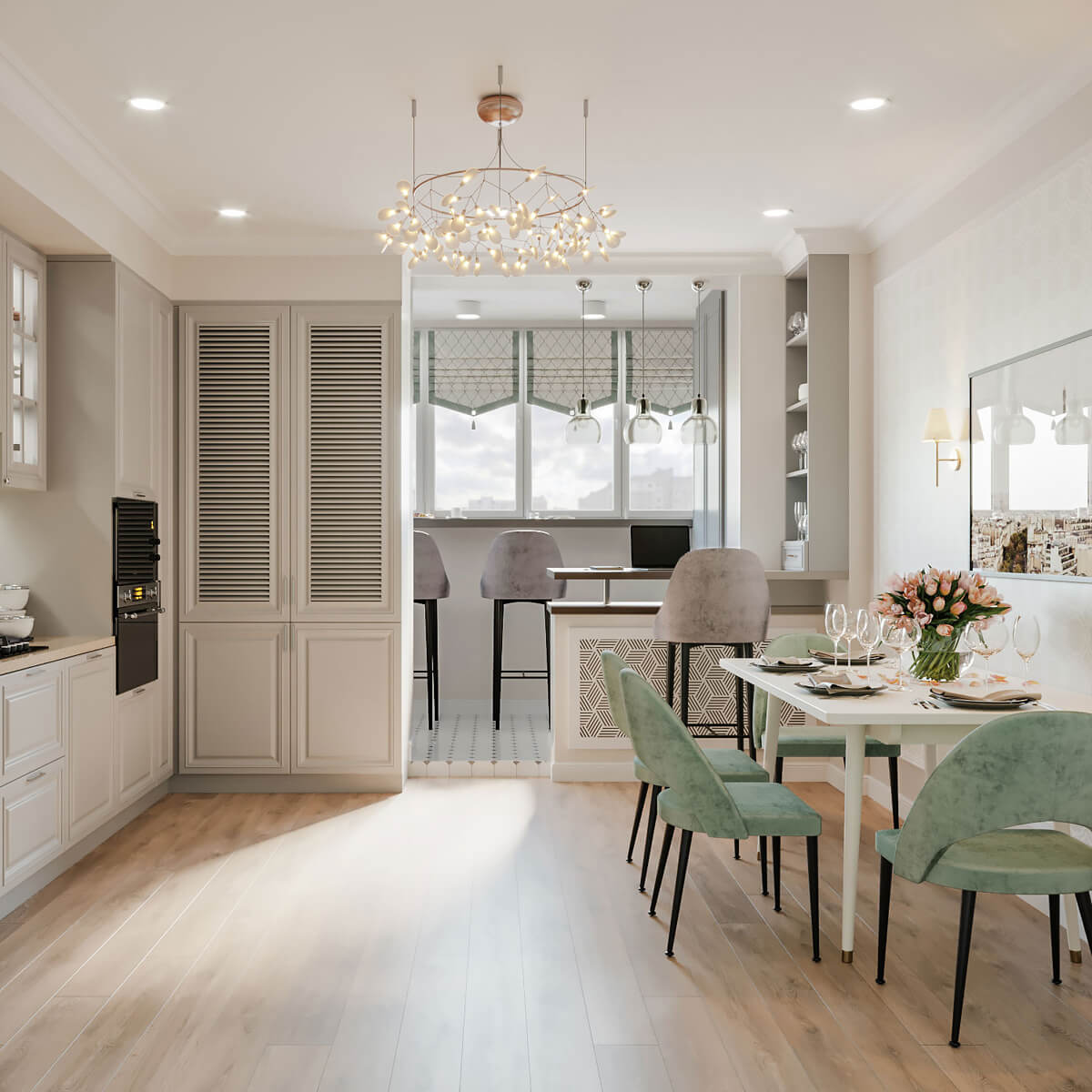 - Цвет плафонов: Бежевый