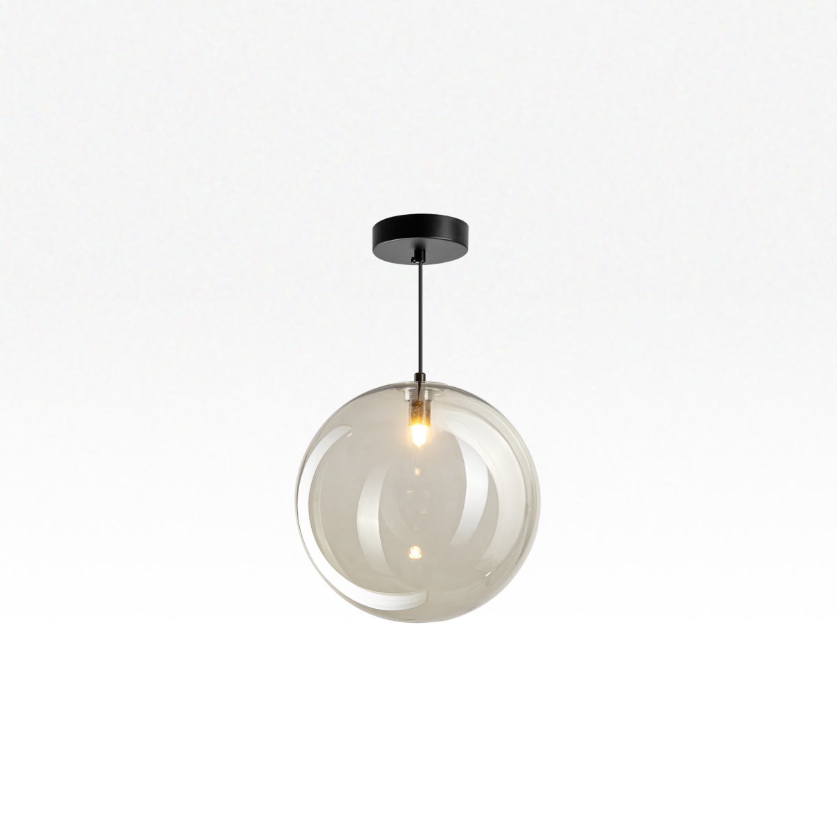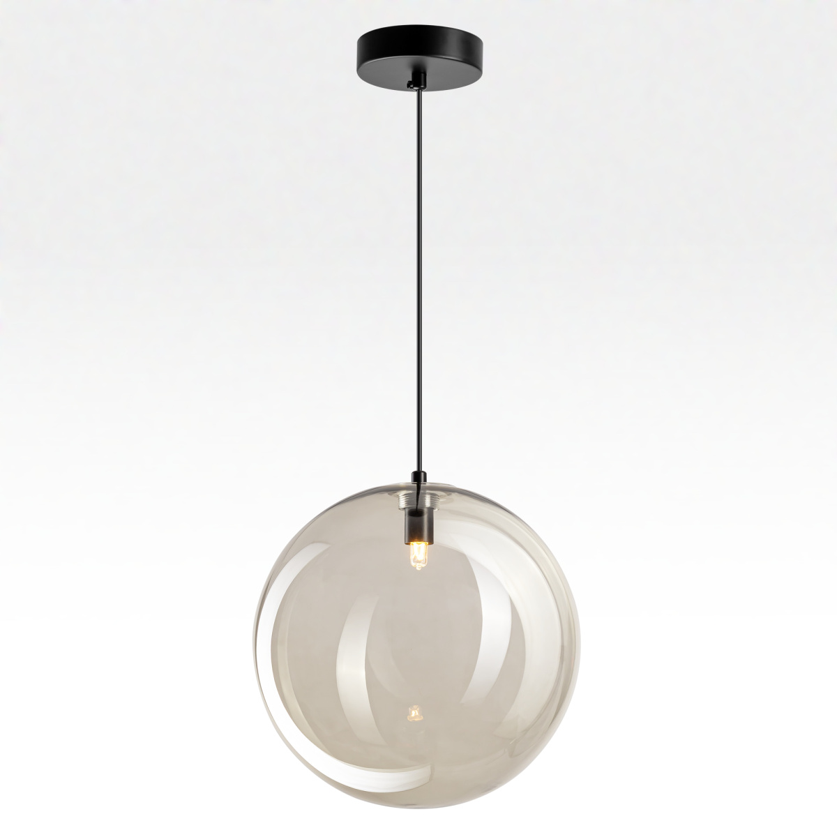 Современный подвесной светильник Citilux ORTON CL202041 представляет собой гармоничное сочетание правильных геометрических форм и воздушной лёгкости. Прозрачный стеклянный шар с лёгким дымчатым оттенком, подвешенный на чёрном матовом металлическом основании, выглядит эффектно при любом освещении.