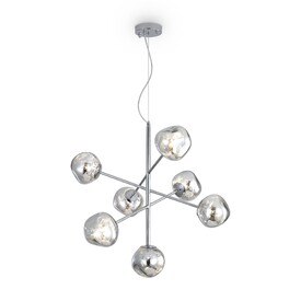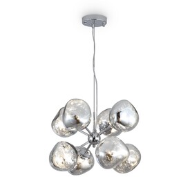 Арматура — металл, цвет — хром. Шарообразные плафоны с зеркальным эффектом и переливами. Материал - стекло с серебристым напылением. Источник света — лампа с цоколем — G9.