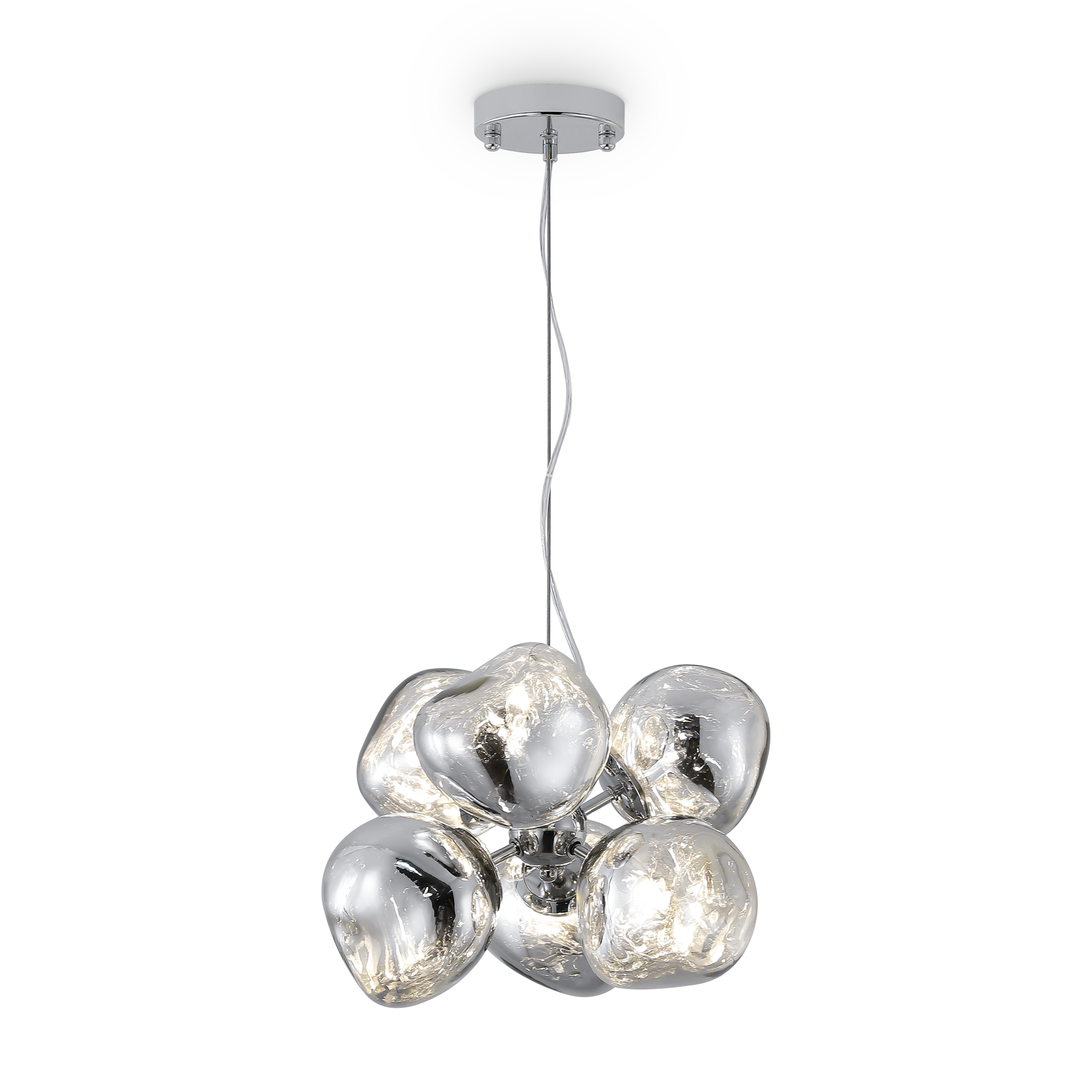 Подвесной светодиодный светильник FR5378PL-06SM от немецкого производителя Maytoni гармонично будет смотреться в вашем интерьере коридоре, в спальне, в кафе. Материал арматуры металл хромироного цвета, материал плафона стекло дымчатого цвета , в светильнике установлен 6 плафонов с цоколем G9 и мощностью 25W. Шарообразные плафоны с зеркальным эффектом и переливами .Высоту светильника можно регулировать минимальная 380мм максимальная -1180мм .Данную модель всегда можете купить в интернет-магазине 220svet.