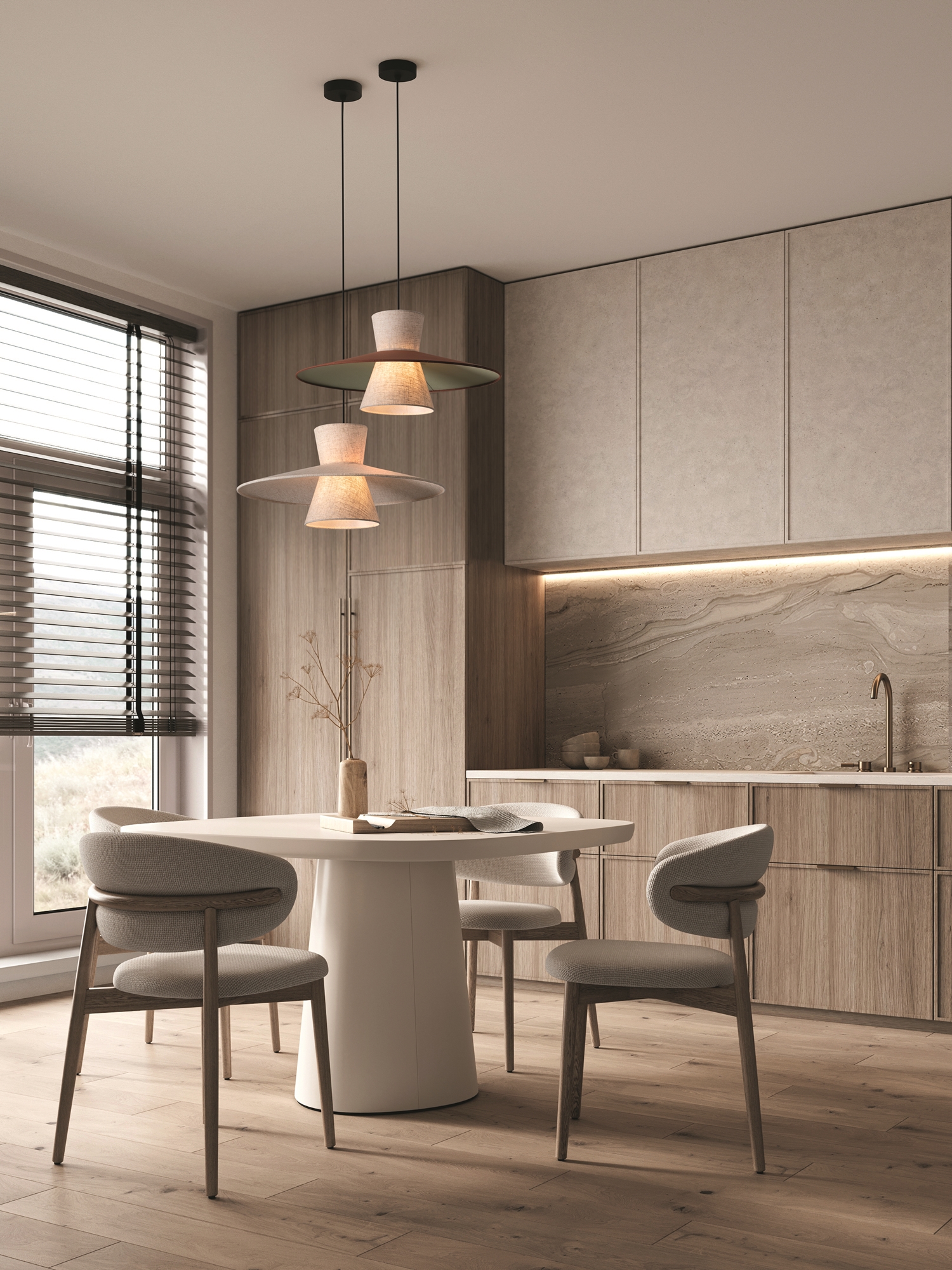 Серия Fly представлена тканевыми подвесными светильниками трендовых цветов. Плафоны выполнены из ткани в двух вариантах: комбинация бежевого, зеленого и терракотового цветов, а также полностью бежевый из натурального льна. Размер светильников: диаметр 500 мм, высота 1000 мм. Арматура — металл черного цвета. Цоколь E14, рассчитан на лампу мощностью до 40 Вт. Дизайн сочетает современные цветовые тренды 2024-2025 года с использованием натуральных материалов, создавая яркий акцент в интерьере.