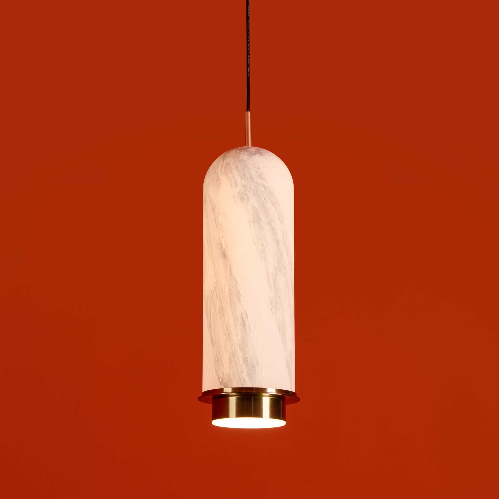 Арматура — металл. Стеклянные плафоны с имитацией мрамора и полосками в ретро-стиле. Интегрированный LED источник света 2700К, угол рассеивания 360°. Высота регулируется.
