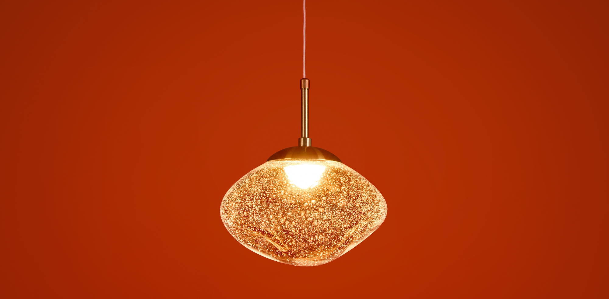 Арматура — металл. Стеклянные плафоны с пузырьками в трёх цветах: дымчатый, прозрачный, янтарный. Интегрированный LED источник света 3000К, Ra 80, угол 180°. Высота регулируется.