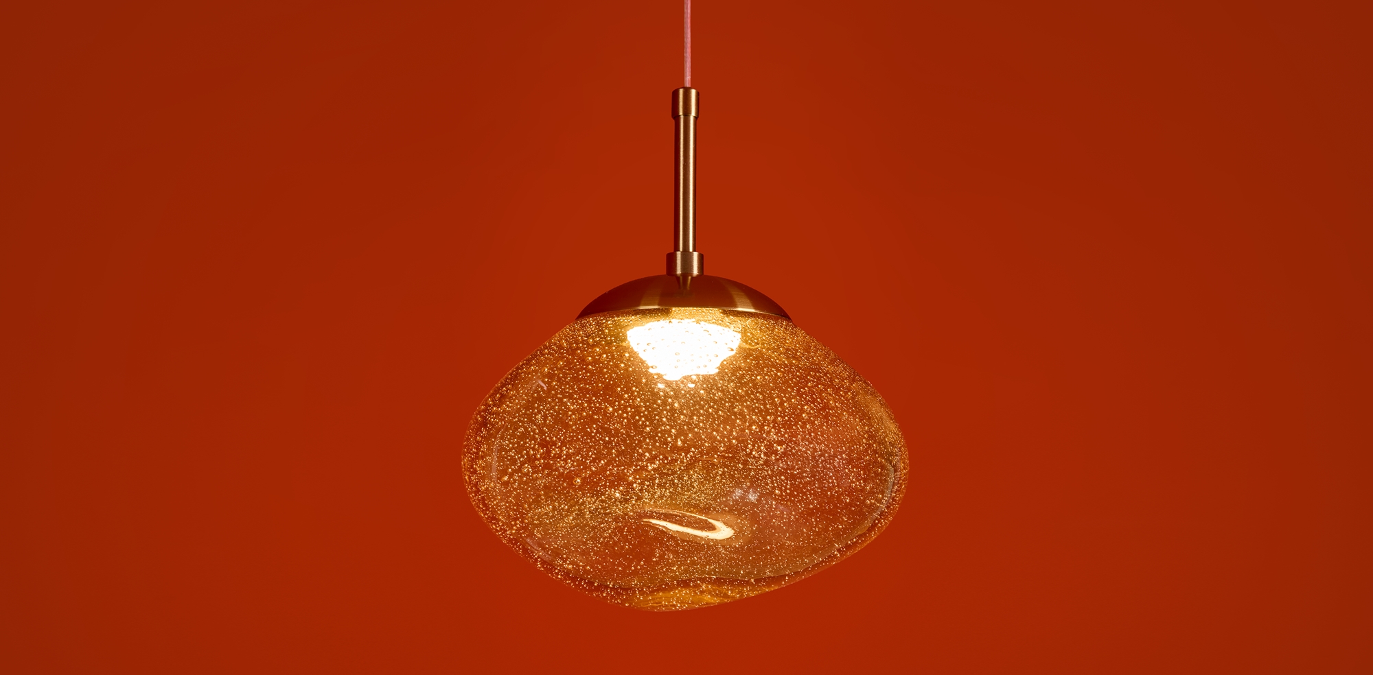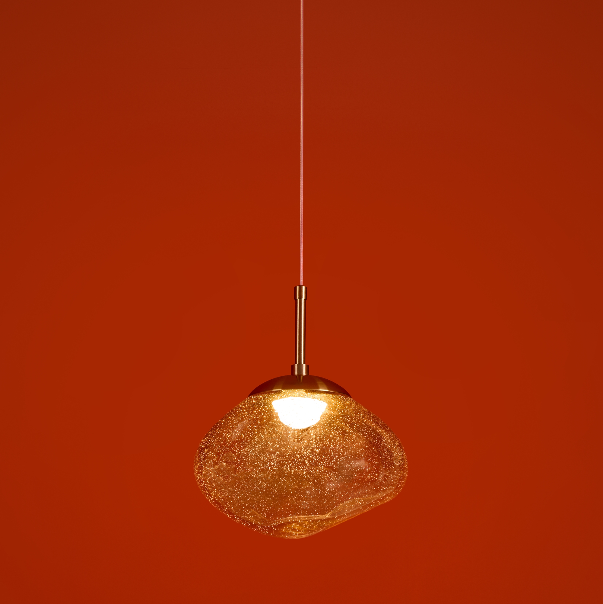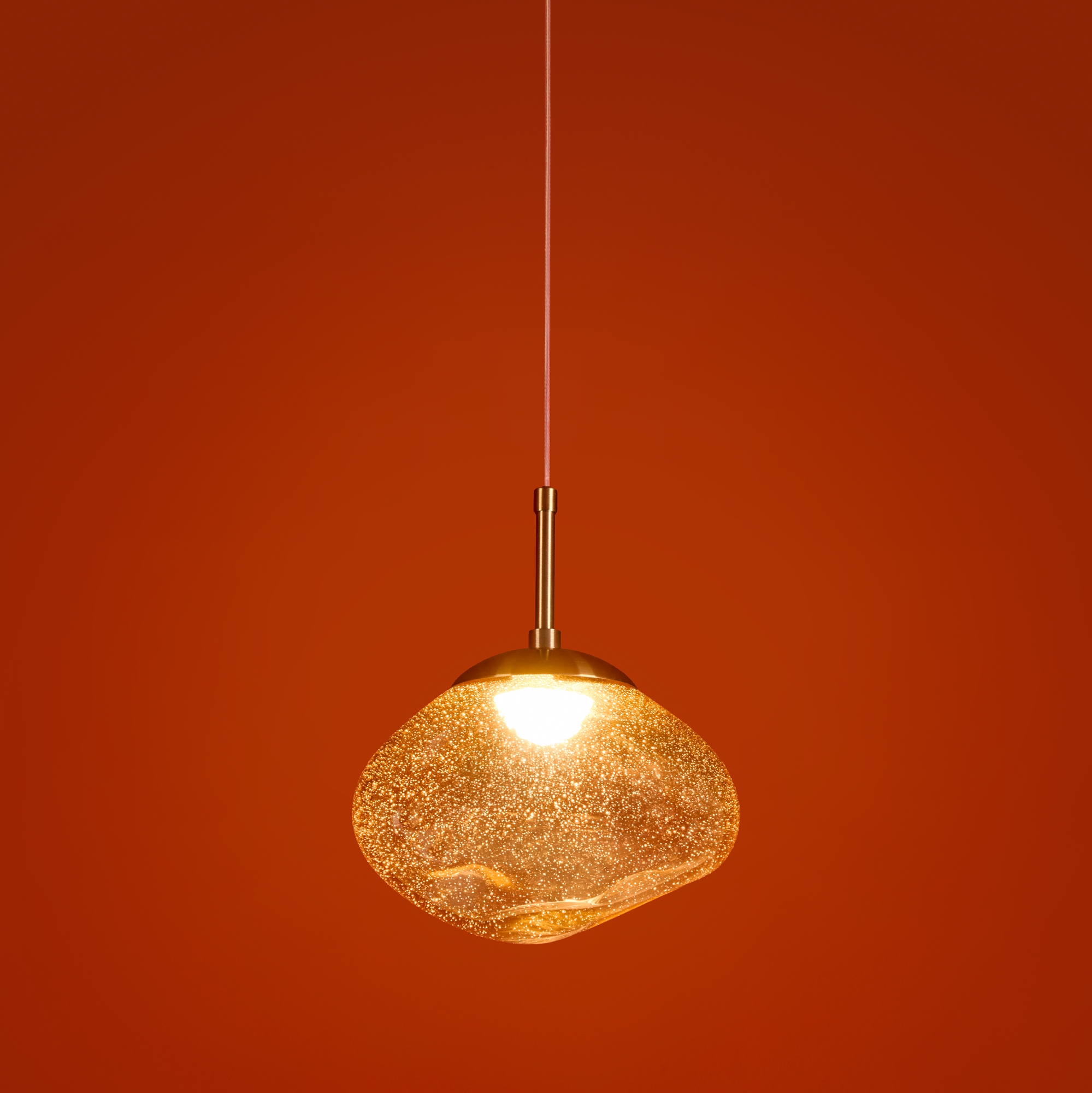 Арматура — металл. Стеклянные плафоны с пузырьками в трёх цветах: дымчатый, прозрачный, янтарный. Интегрированный LED источник света 3000К, Ra 80, угол 180°. Высота регулируется.