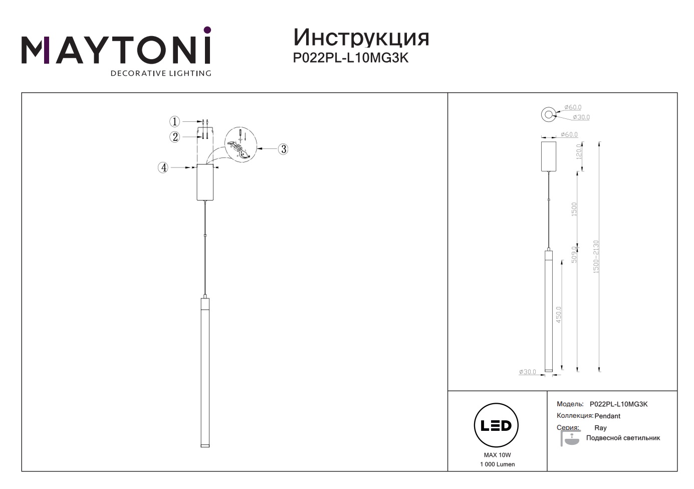 Данную модель P022PL-L10MG3K с быстрой доставкой спешите купить по цене 10 590 ₽ в магазине 220svet.ru